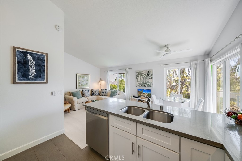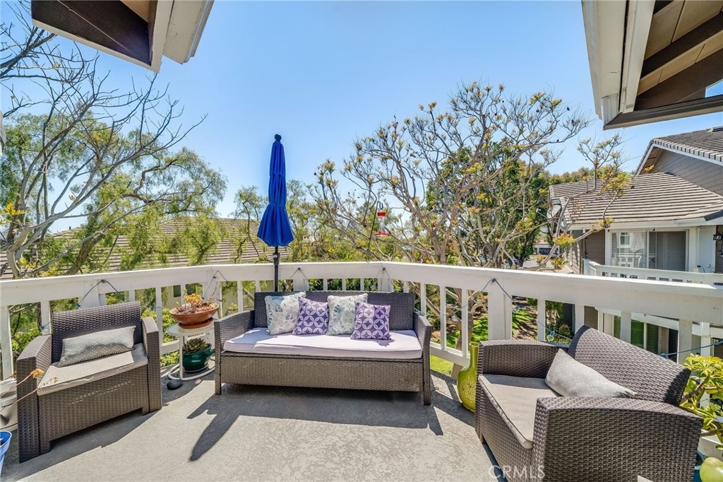 Welcome to 23 Brighton Place — a beautifully upgraded, private corner unit nestled just minutes from the beach. Perched on the top floor, this light-filled home offers rare privacy and serene views with no neighbors above. Step inside to a designer-upgraded kitchen featuring quartz countertops, custom cabinetry, and stainless steel appliances, perfect for cooking and entertaining. The bathroom has been thoughtfully remodeled with premium finishes, creating a spa-like atmosphere. Enjoy resort-style living with access to three pools, spas, tennis courts, a clubhouse, fitness center, and scenic walking trails. With easy access to the best of Laguna Niguel and Dana Point — from shops and dining to world-class beaches — this is coastal Southern California living at its finest.