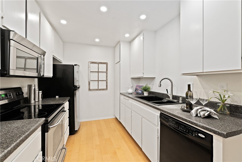 BEACON HILL TERRACE SINGLE LEVEL, MAIN FLOOR, NO STEPS CONDO 2 MILES TO THE BEACH! Serene and quiet location within tract. Wood flooring throughout the main living area. White kitchen cabinets with stainless steel oven and microwave and overhead recessed lighting. Large great room flooded with light and slider which goes out to an enclosed patio area. Washer and dryer included and inside. HOA includes garbage and water. HOA recently completed complex painting and exterior repairs. One assigned parking spot plus ample guest parking available. VA approved complex. HOA amenities included 3 pools and 6 lighted tennis courts.