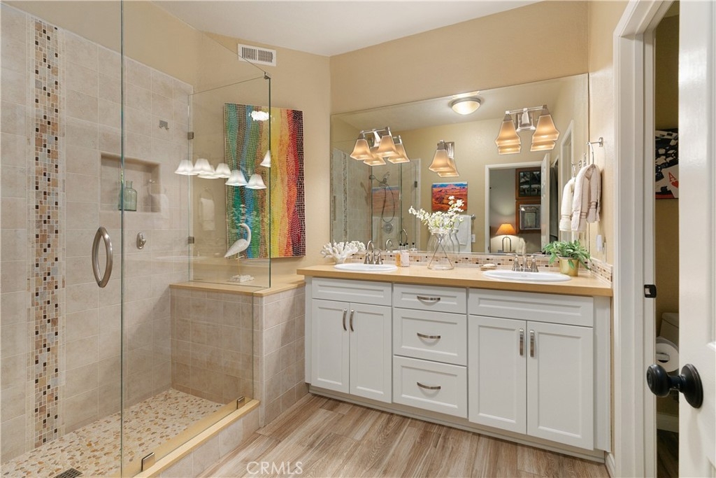 SINGLE LEVEL END UNIT CONDO IN THE COVETED BEACON HILL VISTAS TRACT. Lush walkway with nice open green space to the front door. Spacious kitchen with white cabinets, sleek countertop, new appliances, plus added gas (previously electric) for a gas range and a breakfast nook. Large great room with rebuilt fireplace with tile accents and with a tremendous amount of natural light and privacy. Dining room adjacent which can accommodate a large table for entertaining. Hall bath with shower over tub. Large patio with beautiful pavers and French drains, extends the whole length of the condo with access from the main living area and both bedrooms. Bedrooms have ample closet space with custom closet doors. Master bath has upgraded cabinets and counter top, dual sinks and large shower and storage. Anderson windows throughout with Hunter Douglas Shades. Re-piped with new copper pipes. New furnace. Two car attached garage with a new door and had added storage cabinets, overhead storage and direct access to condo plus driveway. VA and FHA approved complex. Beacon Hill has 6 lighted tennis courts, 3 pools, award winning Malcom Elementary school and is close to walking trails, beaches and 5 star resorts.