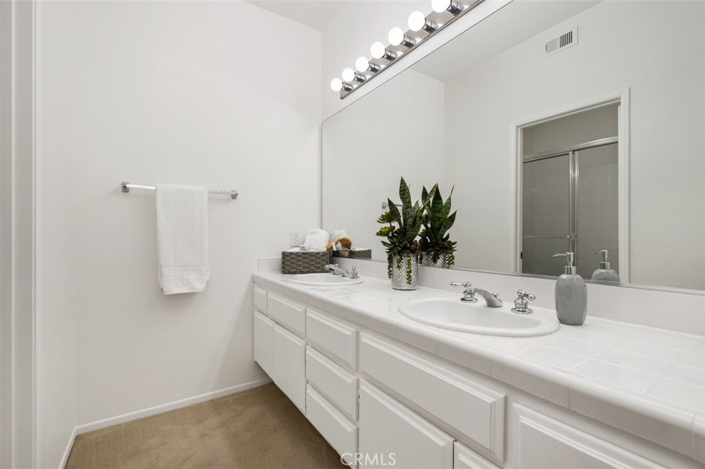 Welcome to your dream coastal retreat in the highly sought-after Breakers of Bear Brand community, where luxury living meets the serene coastal lifestyle. This end unit upstairs condo boasts 2 bedrooms, 2 bathrooms, a 1-car garage with direct access, and a full-sized driveway, offering both comfort and convenience. As you step into this meticulously maintained home, you'll immediately notice the abundance of natural light that fills every corner, creating a bright and inviting ambiance. The plumbing has been updated with new PEX piping, ensuring peace of mind and reliability for years to come. Freshly painted walls provide a clean and modern canvas, ready for you to add your personal touch. The closets are equipped with built-ins, offering ample storage and organization possibilities. Recessed lighting throughout the home adds a touch of sophistication, while real wood flooring in the living room and custom wood shutters exude timeless elegance. The kitchen has been tastefully updated with newly painted cabinets, complementing the clean white tiles and immaculate shelf-lined cupboards. The oversized deck, where you can savor the cool ocean breezes is your outdoor personal oasis. With an oversized garage featuring high ceilings and additional storage space, you'll have plenty of room for all your outdoor gear and more. Location-wise, it doesn't get much better than this. The condo is nestled in a prime spot with excellent walkability and a community access gate to the nearby Ocean Ranch shopping areas, where you'll find an array of fine dining establishments, an upscale theater, boutique shopping, and more. Embrace the coastal lifestyle with nearby parks, beach walking trails, and biking paths that provide endless opportunities for outdoor recreation and relaxation. Enjoy the golf courses nearby or benefit from top rated schools. Take advantage of the gorgeous pool and spa to unwind. Make this condo your full-time residence, a vacation retreat, or an investment property!
