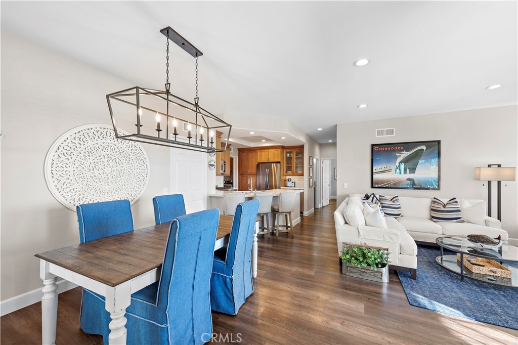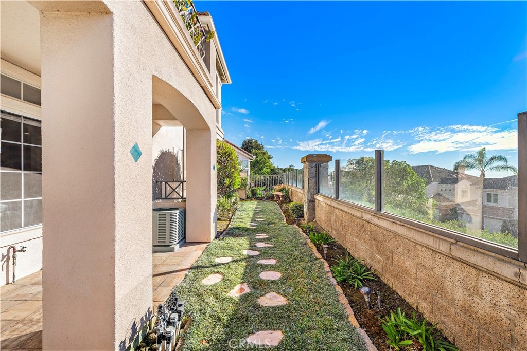 This unit is one of the best locations within the complex with ocean, hills and Catalina views. This private end unit single story home features custom luxury, an abundance of natural light and an open living concept with a wrap around yard. Remodeled in 2018 this home adorns a custom kitchen, bathrooms, fireplace, hardwood-style flooring, custom built-ins and modern appliances. You will love the spacious primary suite with dual vanities, a privacy closet, a walk-in shower and a walk-in closet. The second bathroom features dual vanities as well, perfect for your guests. No steps inside the unit or to the unit from the parking lot. Just 2 steps up from the garage to the laundry room off the kitchen. This is the perfect home for those looking for privacy and open feel. Enjoy scenic hills, city lights, ocean and Catalina sunset views complemented by the wrap around yard that creates a coastal ambiance. This can be sold fully furnished, turn-key!