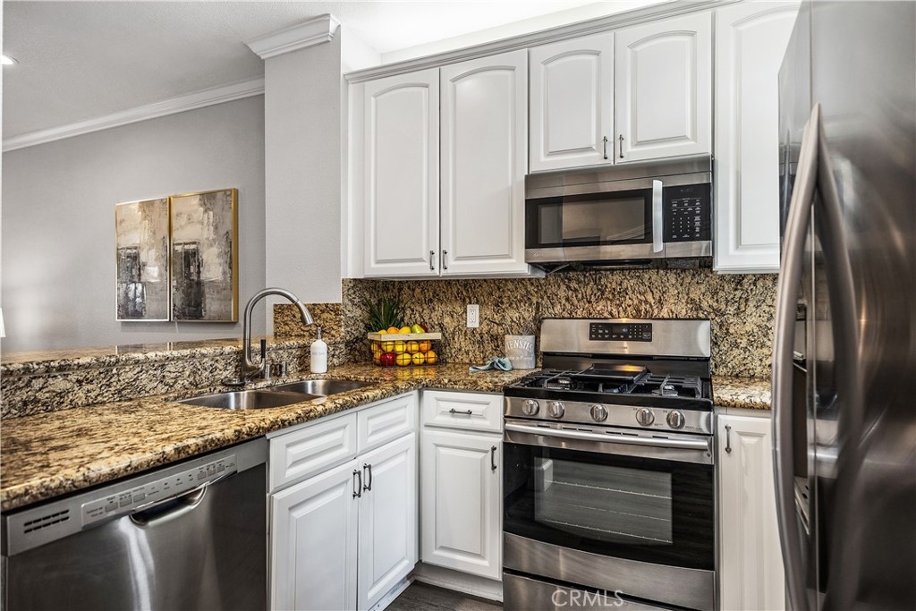 This gorgeous, updated 2-bedroom, 2.5-bath, 1,338 sq ft home is located in the private and desirable gated community of Bridgeport Terrace in Laguna Niguel. Close to great schools, world class beaches, shopping, restaurants, and major freeways. This pristine unit offers exceptional privacy with no one above or below and features high ceilings and an abundance of natural light throughout which includes a huge skylight upon entering the 2nd floor and an abundance of recessed lighting. Your new home has been upgraded with a new HVAC system furnace and AC unit (April 2024) , Level 2 EV charger (July 2023) , Electrical Subpanel (July 2023) Full PEX Repipe (November 2022), New Designer Neutral Paint (March 2026), Bathtubs refinished (March 2026), New Pantry Shelving (March 2026) and so much more… This property is a gem and in excellent shape. Your new home has beautiful Luxury Vinyl Plank Flooring throughout, including the stairs. The chef’s kitchen includes granite countertops, clean white cabinetry, stainless steel appliances, a pantry and has ample storage. Your kitchen has bar seating which is convenient for eating a quick meal or having your morning cup of coffee or tea. This well designed home has an exceptional open concept floor plan where the kitchen and dining areas open to the spacious family room with a modern ceiling fan and a stack stone fireplace surrounded by beautiful built-in cabinetry to display, store and personalize your favorite items. A private patio with vinyl fencing and its own exterior entrance is easily accessible from the family room and is perfect for year-round outdoor dining and entertaining. Upstairs features dual ensuite primary bedrooms, each with a modern ceiling fan and huge walk-in closet with custom organizers in one and its own private bathroom with tub and shower in both. Additional features include a convenient downstairs powder room, inside laundry room and attached direct access garage with built in storage cabinets and workbench plus you have one assigned uncovered parking space as well. The community offers a resort-style feel with a pool, spa, and barbecue area set in the center of the development. Bridgeport Terrace consists of only 48 total units, is VA approved and the HOA includes trash, basic cable, landscaping and structure insurance. There are no supplemental Mello-Roos taxes. This move-in-ready home is priced to sell quickly and will not last long.