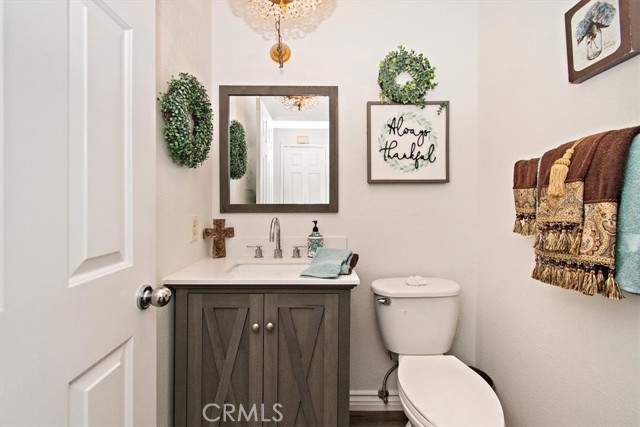 Beautiful, gated Bridgeport Terrace Community of 48 townhomes w/beautifully maintained landscaping & greenbelts. This gorgeous two-story two bedroom, 2.5 bath end-unit town home features 9’ foot ceilings & upgraded throughout. Spacious living room with wood burning fireplace. Remodeled kitchen completed in 2022 features white shaker style cabinet with soft close doors and drawers, granite counters, all stainless appliances including 5 burner gas range, stainless sink & brush nickel faucet. Powder room remodeled in 2022 with updated vanity, matching framed mirror, low flow toilet, chrome faucet, light fixture, towel bar & accessories. Luxury vinyl plank flooring & upgraded tall baseboards throughout all living spaces. Tile flooring in both baths. Wood spindle stairwell leads you upstairs to two master suites each with ensuite bath and walk-in closet. Large inside laundry room conveniently located upstairs. Pex Repipe 2022. Community amenities include a gated pool/spa w/restroom. BBQ & picnic areas. Dues include basic AT&T cable TV, Trash service, exterior maintenance, landscaping, structure insurance & gated entry. Community is FHA & VA approved. Easy access to the 73 Toll Road and the 5 Freeway, Saddleback Community College, Mission Viejo Mall, Movie Theaters, entertainment, beaches & COSTCO. 2 miles to Hidden Hills ES, just over a mile to Niguel Hills MS and 6 miles to Dana Hills HS.