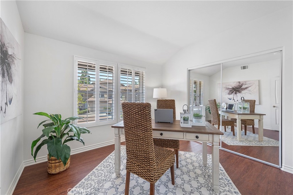 Elegant townhome in the quiet and exclusive gated community of Cameray Pointe at Bear Brand. Offering 3 bedrooms and 2.5 baths with approx. 1,796 SF plus 2-car attached garage. Upon entering you are greeted by the great room with open floorplan, bathed in natural light featuring vaulted ceilings, plantation shutters and a cozy fireplace. The oversized kitchen has many features including granite counters, upgraded stainless steel appliances, GE Profile stove & double oven, new dishwasher, a walk-in pantry and ample windows overlooking the lushly landscaped patio. The spacious master suite light and bright with vaulted ceilings and a walk-in closet plus the master bath offers dual vanities with a soaking tub and separate shower. The floorplan upstairs offers plenty of space between the bedrooms lending to privacy plus a shared full bath and laundry area in hallway. The attached, finished garage is spacious with epoxy flooring, overhead storage as well as a built-in workbench. A rare find, this end unit has easy access in and out of the gated community. This highly sought Gated Community offers a sparkling pool and spa and is centrally located near popular retail shops and restaurants as well as transportation corridors plus it’s just minutes from local beaches and Dana Point Harbor, offering cool ocean breezes. This home is a must see!!