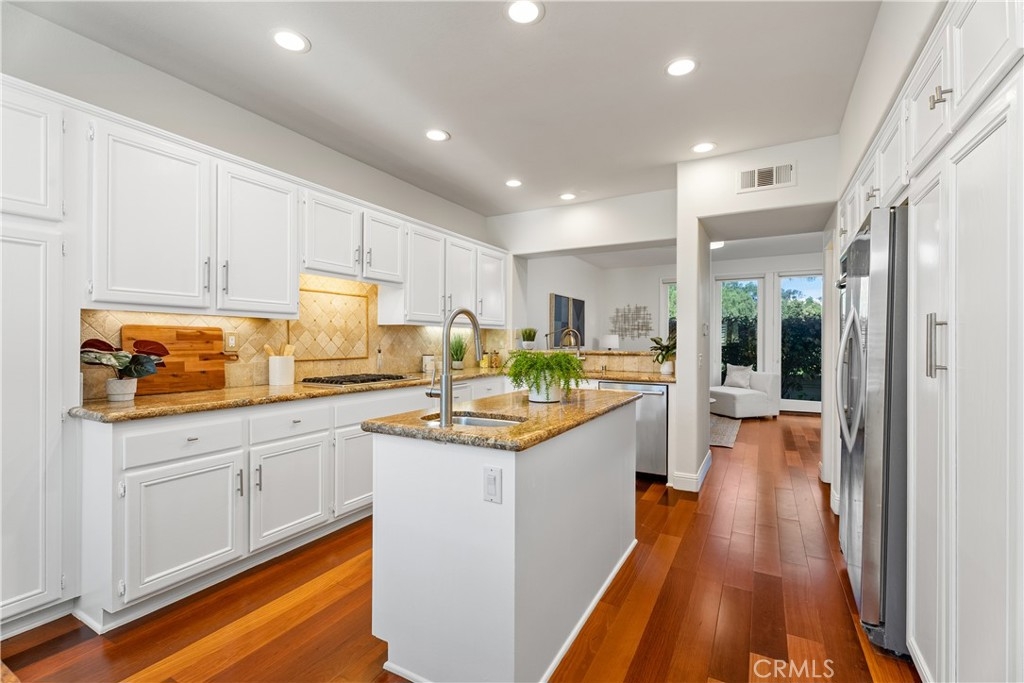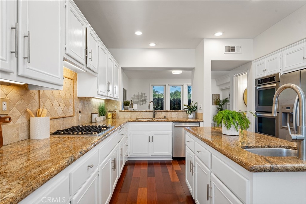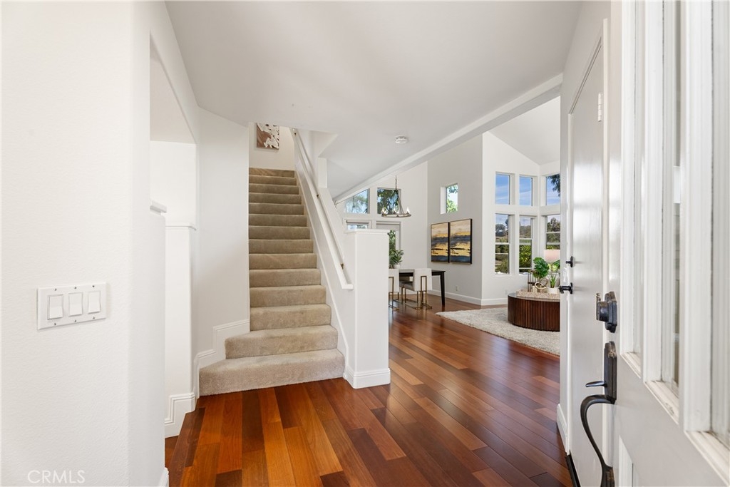 Nestled within the gated community of Cameray Heights, this light-filled 3-bedroom residence offers approx 2200 sq ft of spacious living with soaring ceilings and an open, airy floor plan designed for comfort and functionality. Impeccably maintained and thoughtfully refreshed with new interior paint, recessed lighting, Brazilian Cherrywood flooring throughout the entry, living room, family room, dining room and kitchen, plus brand-new carpet on the stairs and throughout the upstairs hallway and bedrooms. This home presents beautifully and is move-in ready. The oversized backyard is a standout feature — private, usable, and enhanced by scenic hills views, creating an ideal setting for outdoor entertaining or peaceful relaxation. with access to community greenbelt. Additional highlights include a 2-car garage with direct access and room for storage, guest parking within the gated community, and close proximity to the neighborhood pool and spa — conveniently nearby yet positioned for privacy. Ideally located within walking distance to Ocean Ranch Shopping Center, featuring Cinepolis Luxury Cinemas, Trader Joe’s, popular coffee shops, Curl Fitness, Angelina Bottega, boutique retail, and a variety of casual and fine dining options. Just minutes from world class beaches, resorts, biking and hiking trails and Laguna Niguel Regional Park, Wood Canyons Wilderness Park, top-rated schools, and major commuter routes. Well maintained and lightly lived in through the years, this home represents exceptional value in one of Laguna Niguel’s most desirable gated neighborhoods. A rare opportunity to own a spacious view property with a large yard and walkable lifestyle amenities.