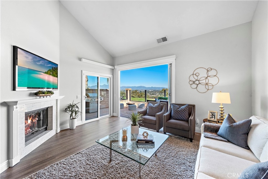 Breathtaking Panoramic Views in Prestigious Laguna Niguel! This beautifully, upgraded, townhome features high ceilings, panoramic view windows with electric blinds in the back, and La Cantina doors, which are perfect for indoor outdoor living. The airy and open floorplan welcomes you with an abundance of natural light. Prepare delicious meals in the kitchen with new quartz countertops and all new appliances, except for refrigerator. Relax and feel at ease with new manufactured wood flooring upgraded quartz tile fireplaces and paint in a calming, neutral, color palate. Sip your morning cup of coffee or evening glass of wine on the outdoor patio that provides breathtaking views. You will enjoy amazing sunrises, the alpine glow over saddleback at dusk, and incredible city lights view at night. Enjoy the master suite with cozy fireplace and viewing balcony. Upgraded master bathroom with new vanities. Two secondary bedrooms and updated full bath complete the accommodations! 2021 PEX Piping, Nest home system, ring doorbell, and Phillips Hue light system controlled by cell phone enhance this turnkey townhome. Right outside your door you can take the path and link up to your gated entrance of the Aliso Creek Summit Trail. Capri is a spectacular community with resort-style amenities that include a pool & spa and three lavish greenbelts. Enjoy an abundance of outdoor recreational activities including Laguna Niguel Regional Park with lake. World-famous beaches and resorts, award-winning schools, and a variety of shops and restaurants are all close by. 5 minutes from Whole Foods and less than 10 minutes to the Sparkling Pacific! Live like you are on vacation every day! This is a MUST-SEE home!!