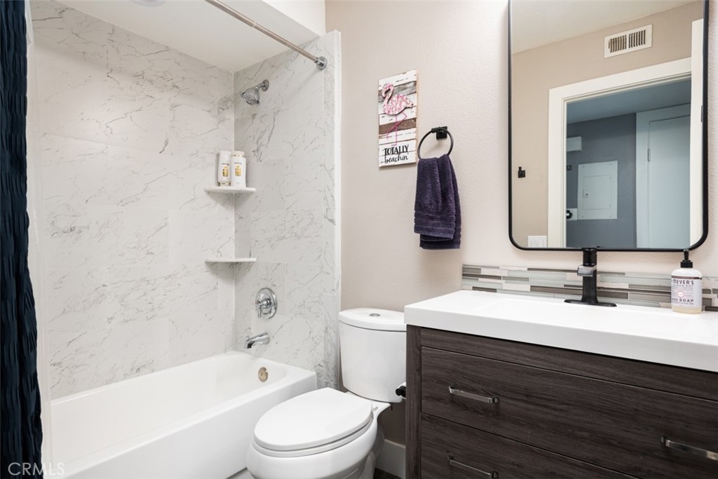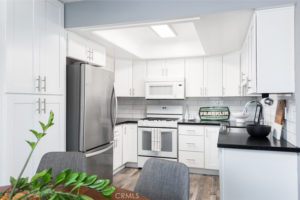 Best value for 2 beds and 2 baths in Laguna Niguel! Located in the Casa La Paz community, this highly upgraded upper floor end unit overlooks the greenbelt park. With luxury vinyl flooring and new paint, this two bedroom two full bathrooms is the perfect move in ready space to call your next home. The community includes a pool, spa and tennis courts. Also comes with an assigned covered parking spot just below the unit with tons of guest parking surrounding.