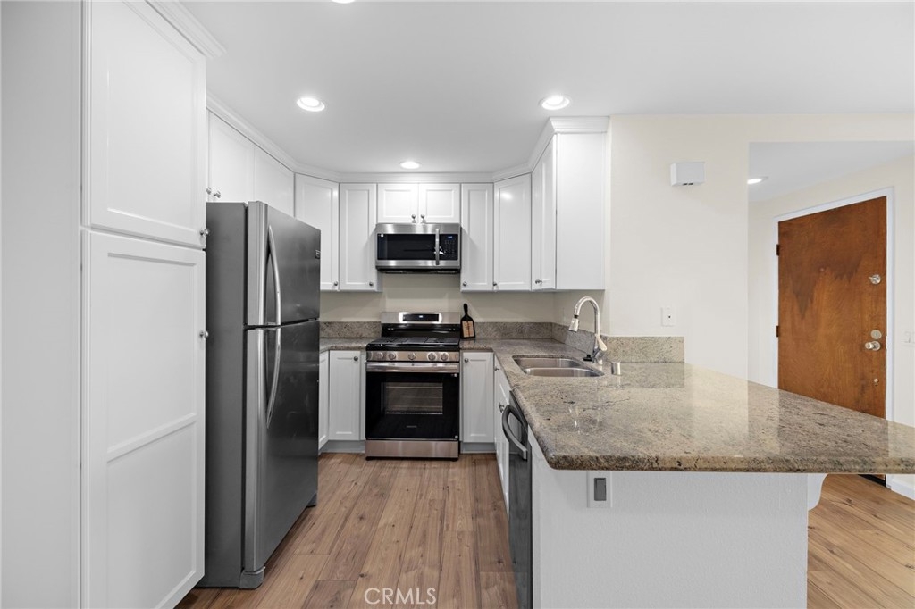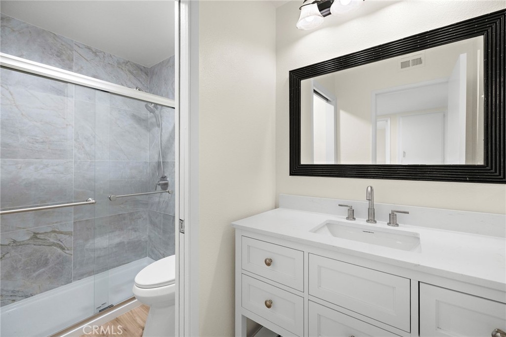 This is it!!! Laguna Niguel gated community of Casa La Paz, 2 Bedroom 1 bath beautifully remodeled condo is walking distance to restaurants, shopping and parks. This home boasts air conditioning, wide luxury plank floors, a remodeled kitchen with updated cabinets and quartz countertops. The bathroom is large with new oversized walk in shower. The open floorplan is warm and inviting with no one above you. The bedrooms are large and the unit features a covered balcony with storage and indoor washer and dryer. Guest Parking is ample and you have exclusive access to one carport with storage and one additional parking space. This gated community has beautiful pool and spa, tennis court and dog park.