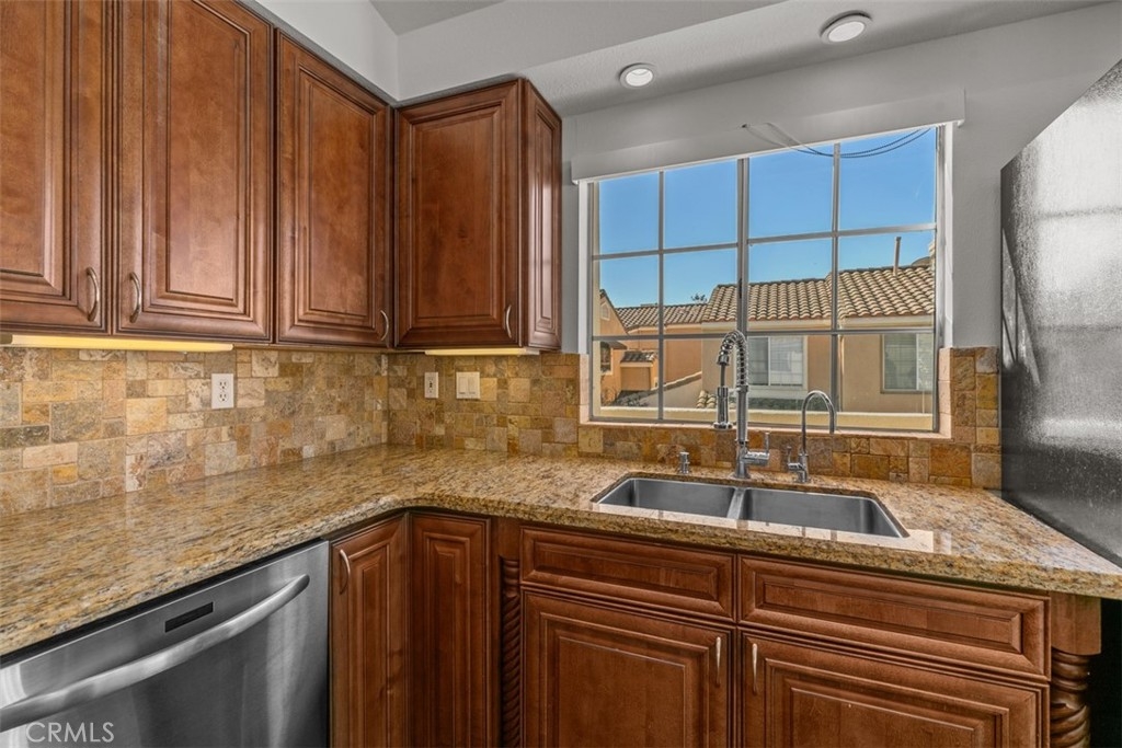 Beautifully appointed Chandon condo in the desirable community of Marina Hills. This one is not to be missed! The impressive living space offers vaulted ceilings, recessed lighting, neutral toned walls with ample natural light, balcony adjacent to living area. This contemporary interior offers gorgeous, distressed wood flooring in the main living spaces. The kitchen is extra unique for this floorplan with ceilings that have been opened to show off more vaulted ceilings. This thoughtfully designed and beautifully renovated kitchen contains stainless-steel appliances and granite countertops. The generous main bedroom is made for relaxation and boasts a large closet and a 2nd spacious balcony. A design gem, the adjoining bathroom benefits from a tub in shower. The remodeled guest bathroom is stunning with a glass vanity sink. The oversized 2 car garage is conveniently located next to the entry and the HOA pool and spa are nearby. Other features include PEX plumbing, surround sound system, remodeled stairway with wrought iron railing and wood steps. Marina Hills resort style amenities include 6 tennis courts, Olympic sized pool, spa, bocce ball court, clubhouse, BBQ and hiking trails to the beach. Ideally located near award winning blue ribbon schools, shops and restaurants and minutes from beaches in Dana Point & Laguna Beach. See for yourself what this home has to offer. We love this home. You will too. Call today!