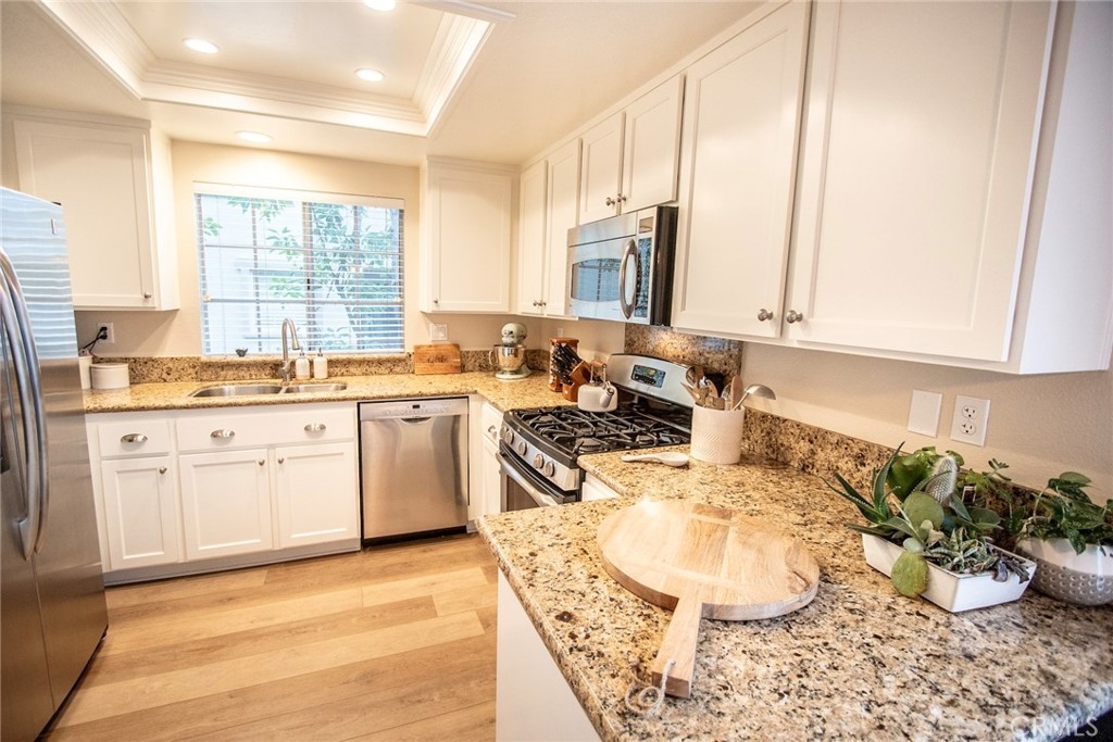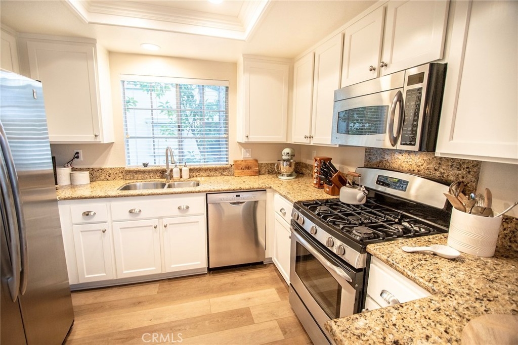 You will love this neighborhood immediately as you drive in and take in all of the luscious landscaping. This well appointed community is part of the Marina Hills community center and also boasts its own pool and clubhouse. As you arrive at this home, notice the trees and the coziness. Enter this home and hop up the stairs to the gorgeous great room, complete with living room, dining room and kitchen. The luxury vinyl floors make this home feel large and light and airy. Both the living and dining room open out to balconies which makes the space so bright with the incoming natural light. The one balcony is a perfect sitting and entertaining area. A BBQ fits perfectly too. The living room features a cozy fireplace and makes get togethers easy with the adjacent dining room and kitchen. The kitchen has been updated with granite counters and beautiful white cabinetry. Down the hall, find both the primary and the second bedroom. Each has its own bathroom and share the laundry closet. Stackable washer and dryer are included. The 2 car garage is wired for an electric charging station for your convenience. If you love lots of natural light in a tidy and updated space, this home is for you! NO MELLO ROOS. This community belongs to the Marina Hills Community Center too! https://marinahills.org/our-community/community-recreation-facility