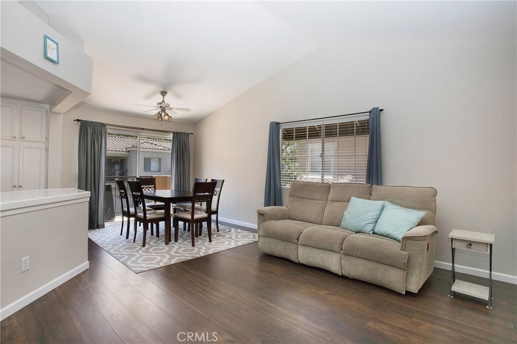 This two bedroom condo is turn key ready. Two bedrooms and two bathrooms (1 Full and a 1/4 baths) all upstairs on this unit. Vaulted ceilings, recently painted, laminate flooring throughout and carpeting in the bedrooms. The kitchen has great counter spaces plus ample cabinetry for storage. Two outdoor balcony areas off the front of this unit. Two car detached garage, built in cabinetry and storage racks, two additional outside parking spots in front of the garage. Close to the community pool and spa. This Chandon community has nice grassy areas for entertaining, concrete walk ways through out the complex and conveniently located to nearby shopping, entertainment and is associated with the Moulton community center.