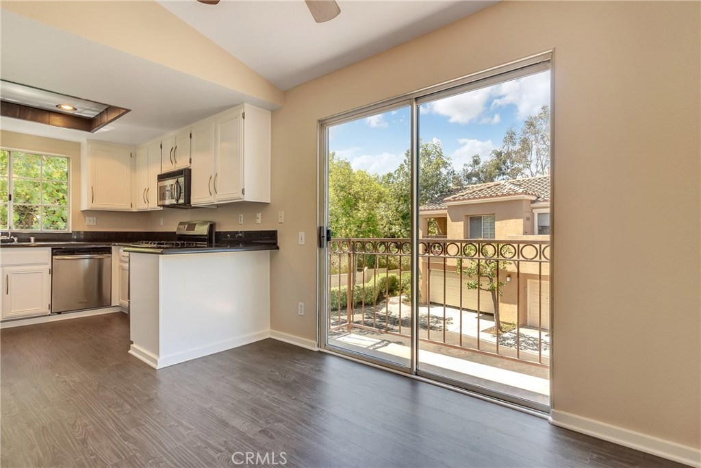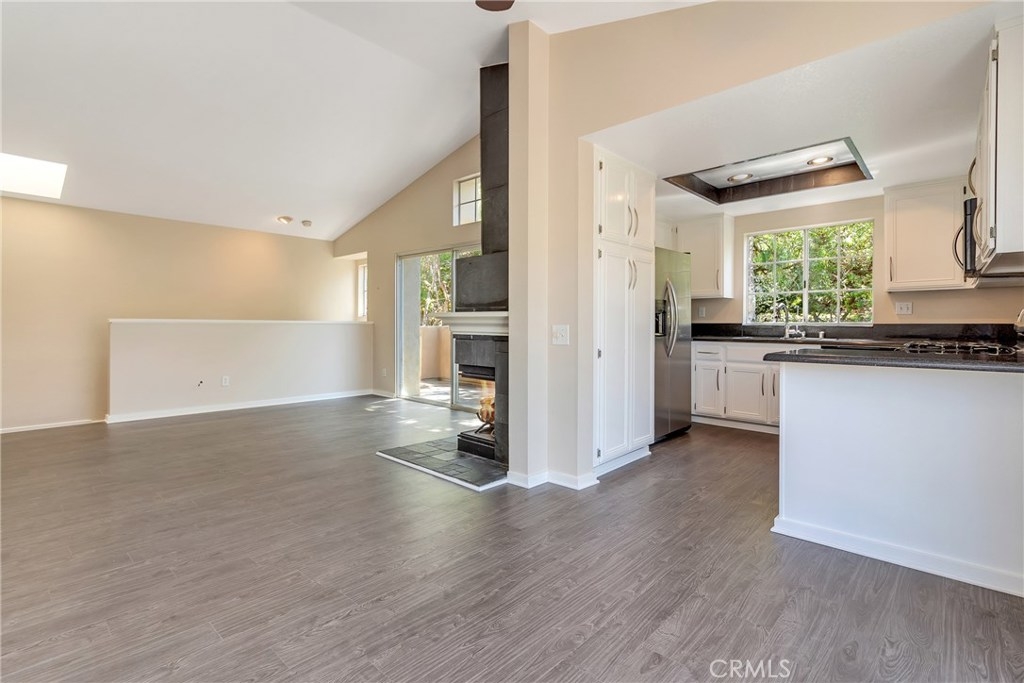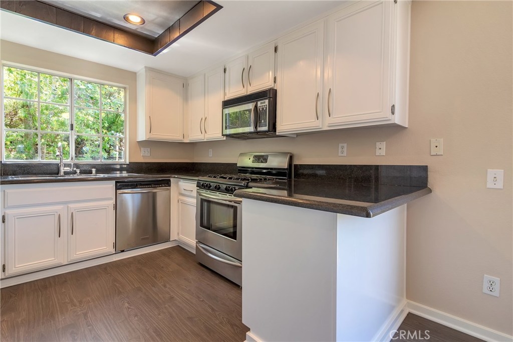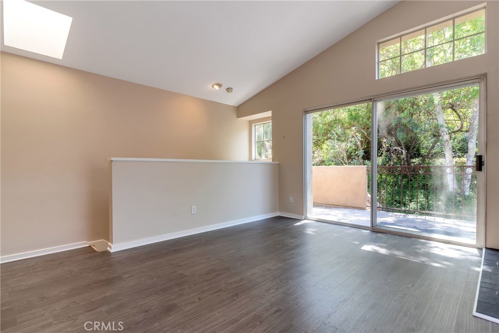 Gorgeous secluded corner end unit townhome with no one above or below in the safe and highly-desirable community of Marina Hills located just 10 minutes from the Dana Point Harbor and the beach. Open the windows and patio door to enjoy cool ocean breezes. Adjacent hillside provides complete privacy over entire back of home, including generous 2nd story deck. Clean, modern design with very high-end features. Completely remodeled interior with vaulted ceilings and skylights create a light and bright living space that opens to a main patio with soothing greenbelt views. New waterproof Vinyl floors and paint in August 2018! Dramatic floor to ceiling slate fireplace with gas convenience. Striking granite countertops and Frigidaire Stainless appliances in kitchen, and modern glass tile and bowl sinks in baths. Pre-wired for surround sound. Flush-mount your entertainment system in custom cabinet and mount your flat-screen to the existing top of the line mount to pivot from living to dining/kitchen. Oversized two-car direct-access garage with extra storage area in back. Additional two-car parking on driveway, a rare and valuable feature in Chandon. In addition to Chandon pool and spa, you will have access to luxurious Marina Hills amenities including Olympic-size pool, clubhouse, tennis courts, parks, lush greenbelts and numerous hike and bike trails. Laguna Heights Marketplace with convenient shopping and dining just a block away. Best schools in Orange County.