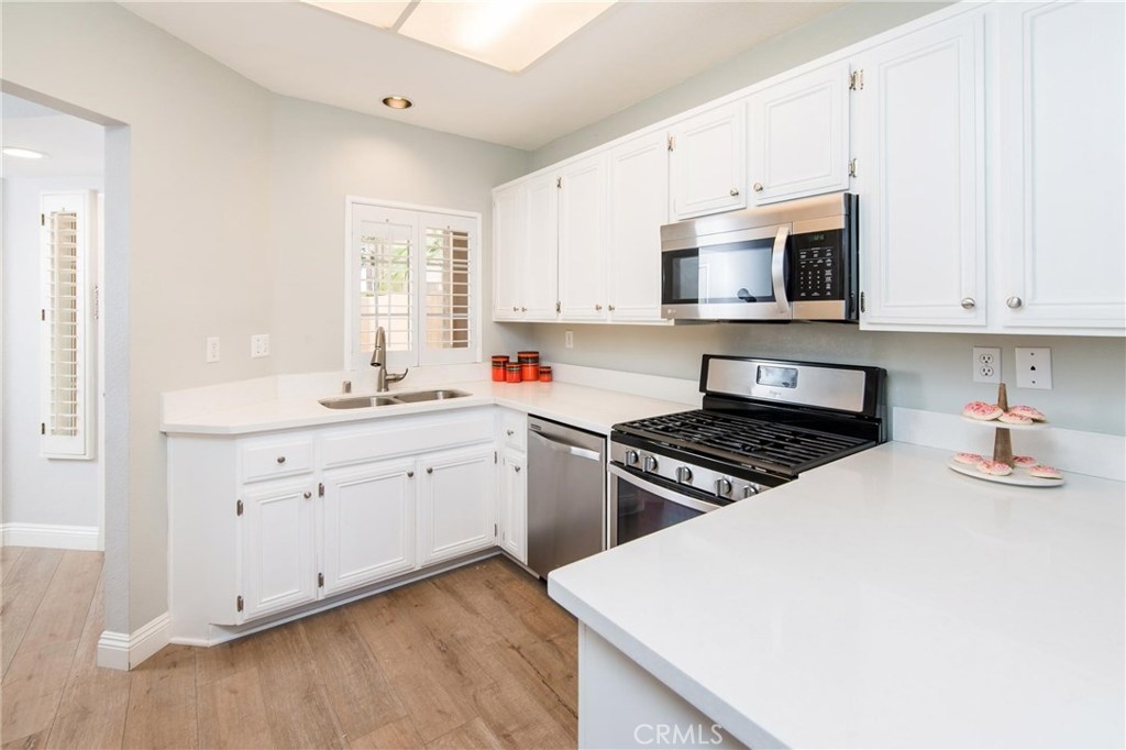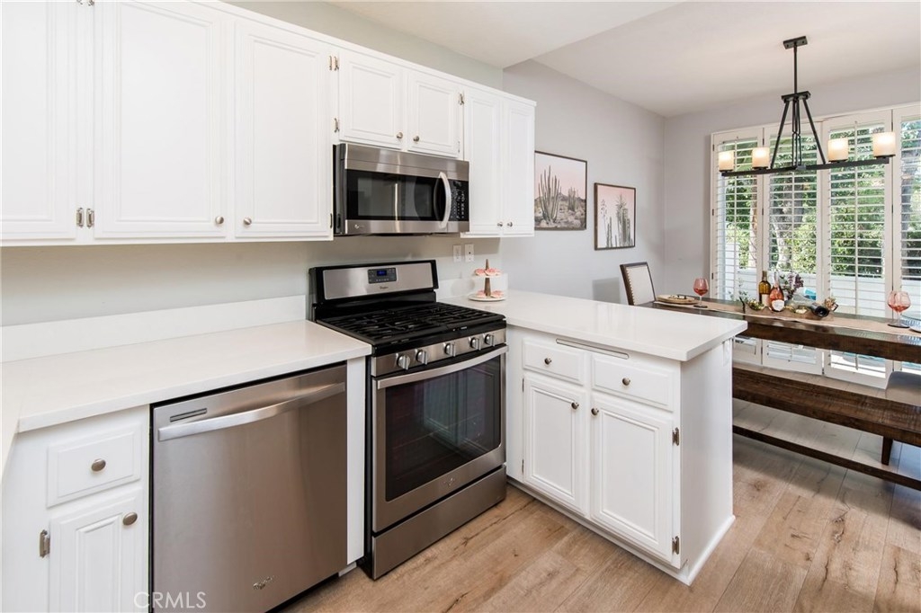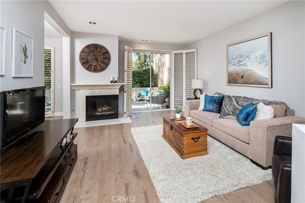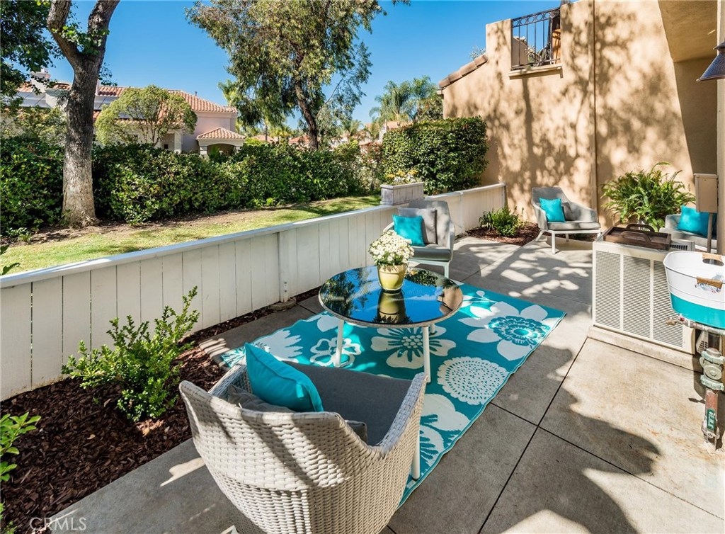 Peaceful, private, and beautifully appointed, this lovely Chandon home truly shines. Situated in a prime location on the West side of the community, this 2 bedroom/2.5 bath home backs to a lush greenbelt lined with mature shade trees. Highly prized for its floor plan, this townhouse style home provides a private courtyard entry which opens to the spacious living room filled with natural light. From the living and dining rooms, sliding glass doors invite you to explore the generous rear garden patio, ideal for entertaining. Open to the dining room, the bright and airy upgraded kitchen boasts quartz counters and newer stainless steel appliances. Upstairs, dual master bedrooms await with en suite baths and park-like views. Upgrades include premium flooring throughout, plantation shutters, recessed lighting, custom paint and upgraded carpeting in the bedrooms. Other amenities include a full size laundry room, two car garage with direct home access, a gas fireplace and a rear patio gate which leads to the greenbelt beyond. Close to shopping, restaurants and a walking/biking trail to world class beaches, Chandon residents also enjoy a community pool and spa, and full access to the Marina Hills Swim and Racquet Club with Olympic Exercise Pool, clubhouse and lighted tennis courts! Find your sanctuary in Chandon!