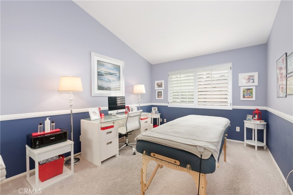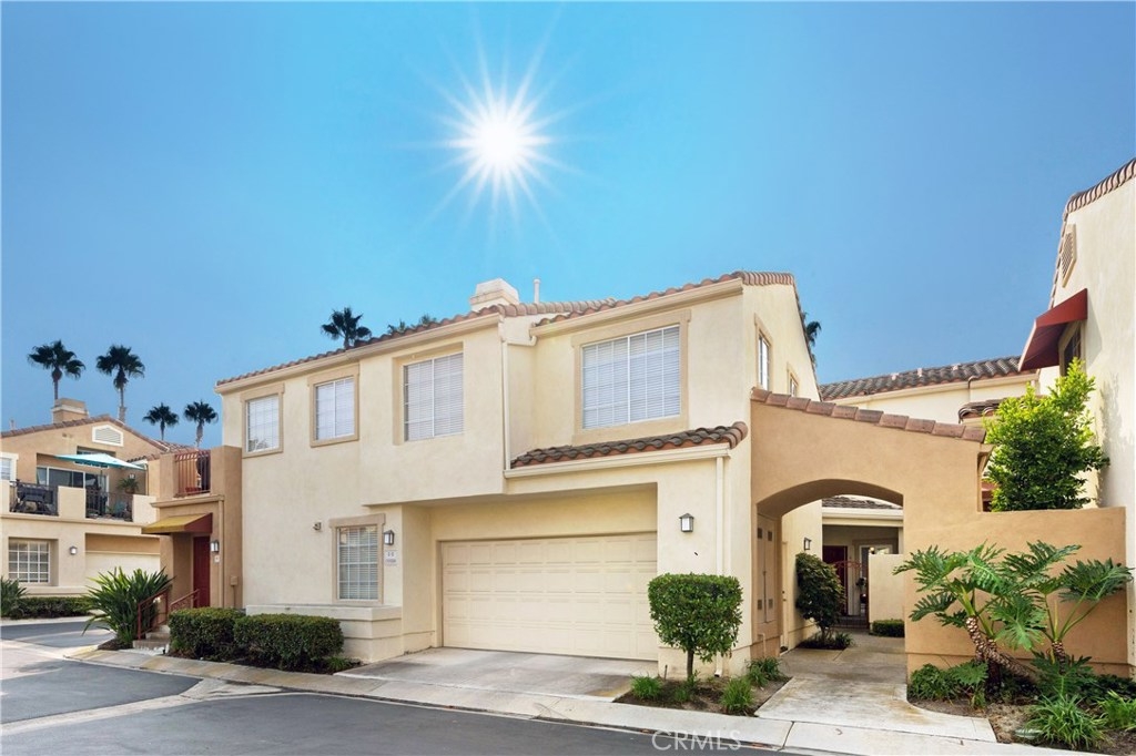 This elegant townhome is located next to a greenbelt with a private enclosed patio. A gated courtyard invites you into a spacious living area with natural lighting and designer touches throughout. The updated kitchen enjoys a coffered ceiling with custom lighting, quartz counters plus attached dining area with a slider to the patio. A fireplace with glass stones is featured in the living room with an additional slider to enjoy indoor/outdoor living. Downstairs has a large storage area, half bath, upgraded baseboards, plantation shutters, and custom lighting. Upstairs boasts two spacious ensuite bedrooms with high ceilings, mirrored wardrobe doors and private baths. The immaculate two-car garage has direct access into the home. Convenient inside laundry room with storage cabinets. The complex has all updated PEX piping and new heater venting. Situated close to the community pool/spa and ample guest parking. Marina Hills master community amenities include: pool, spa, pickleball, tennis courts and clubhouse. Close to shopping, fine dining, the beach. Marina Hills Park offers soccer, basketball, baseball, bocce ball, and a playground. Walk to Salt Creek trail leading to the beach, additional nearby Colinas Ridge hiking and biking trail.