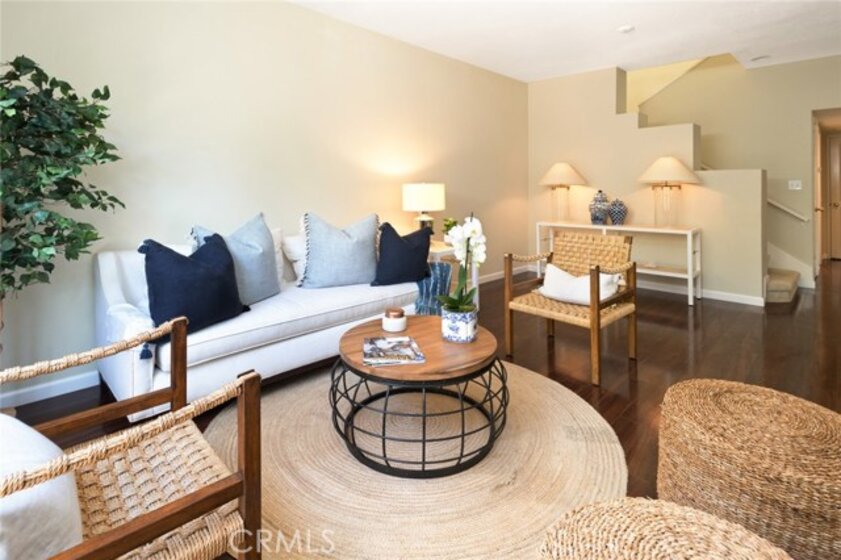 Beautiful home in the lovely neighborhood of Chandon in Marina Hills. End unit with an attached two car garage and indoor laundry, this home has been exceptionally maintained and is in impeccable condition. With the master bedroom and an additional en-suite bedroom upstairs, this home has the option of a third bedroom on the main floor with a full bath. Currently this room is used as a den and does not include a closet. Large hall closet with plenty of storage just adjacent to the den. Lovely kitchen with white cabinets, eat in kitchen nook and a dutch refrigerator. Home is complete with beautiful wood floors throughout the main floor and plush carpet on the upstairs level. A quaint, private patio just off of the main living space! Community pool is perfectly situated near a large green belt and Chandon is also a part of the Marina Hills Recreation center that boasts an Olympic size pool, barbecues, bocce ball courts and community center. Chandon is perfectly located within the Salt Creek area of Laguna Niguel. Beach close with miles of walking trails just outside your door. Come home to this lovely neighborhood while enjoying all the close by amenities of Laguna Niguel.