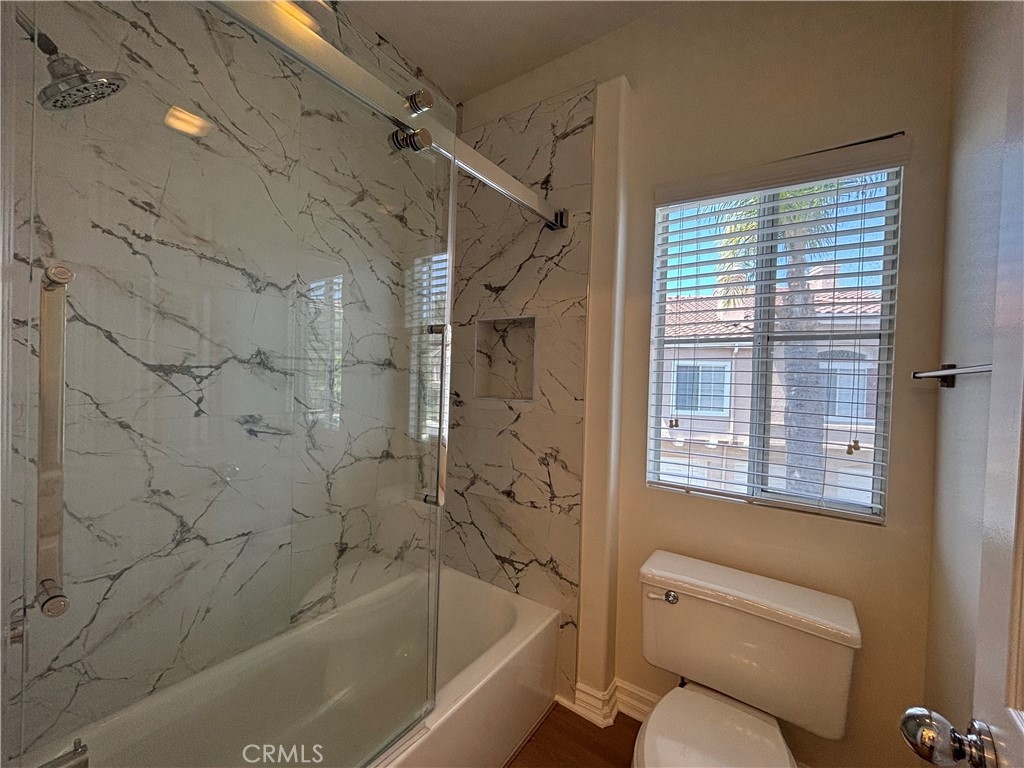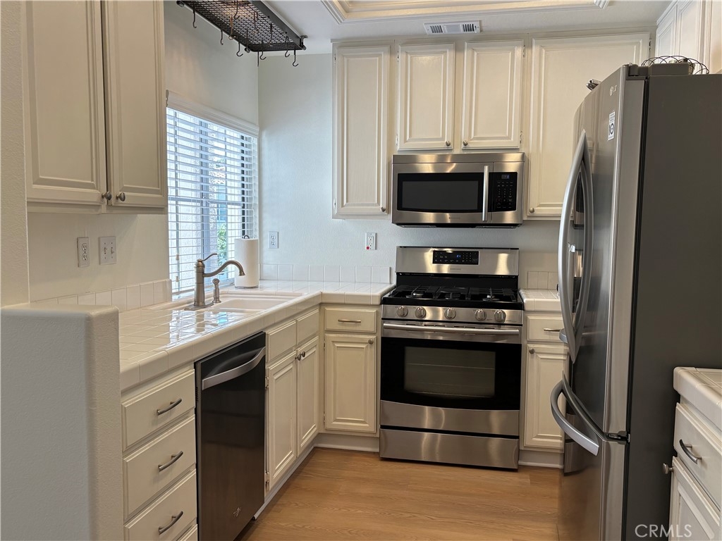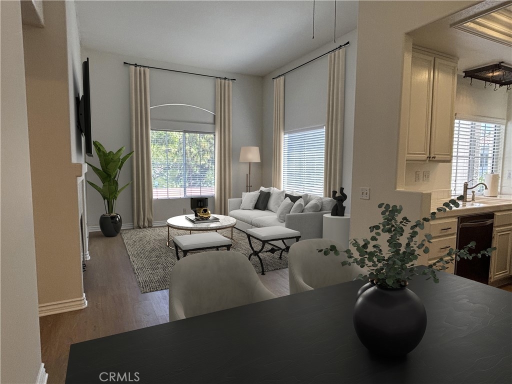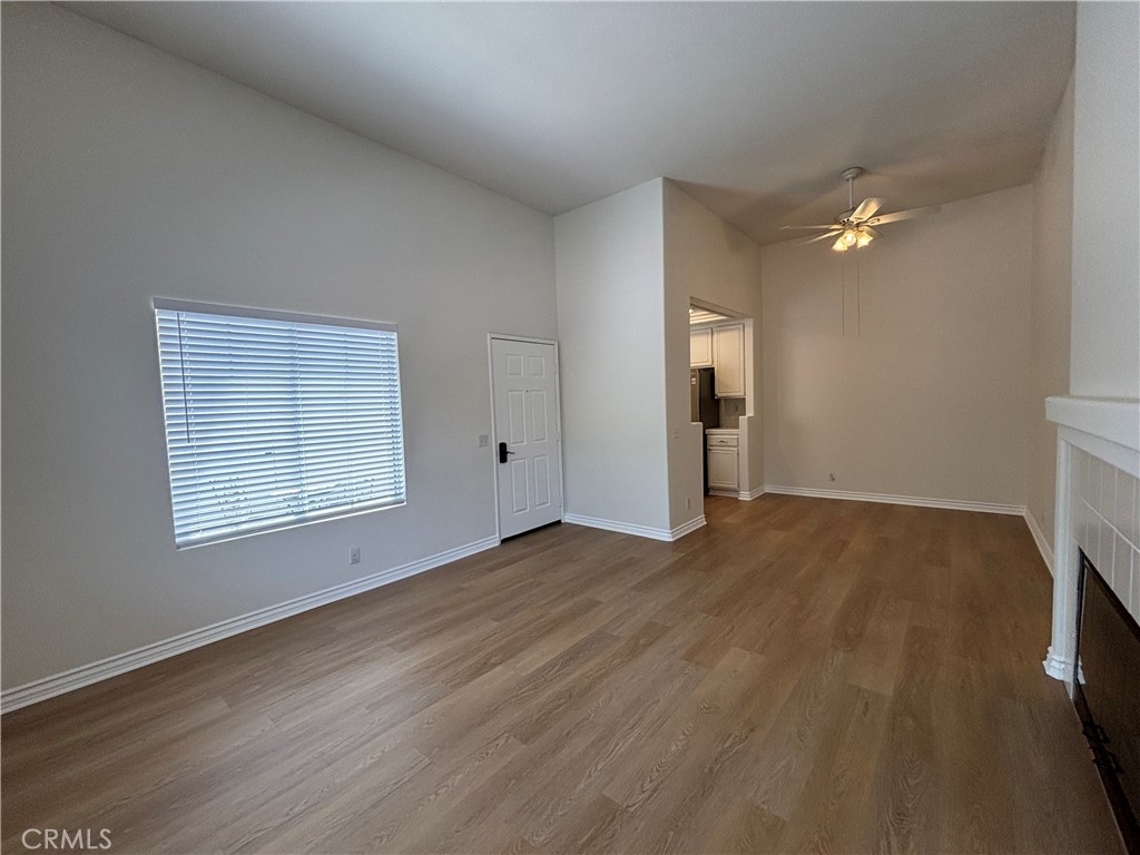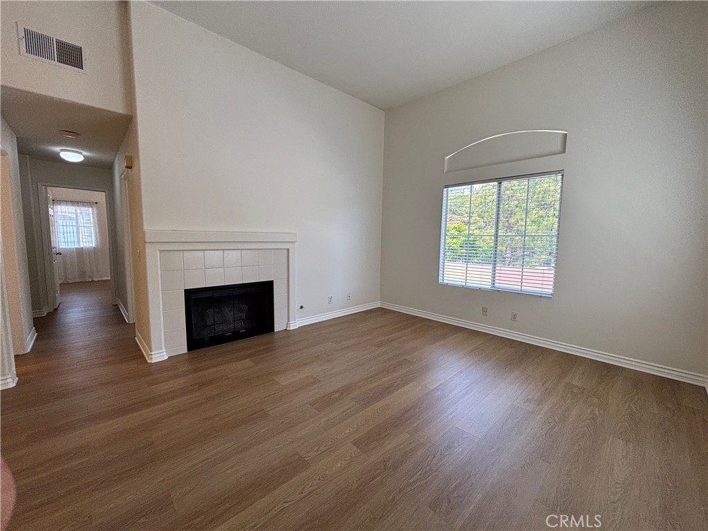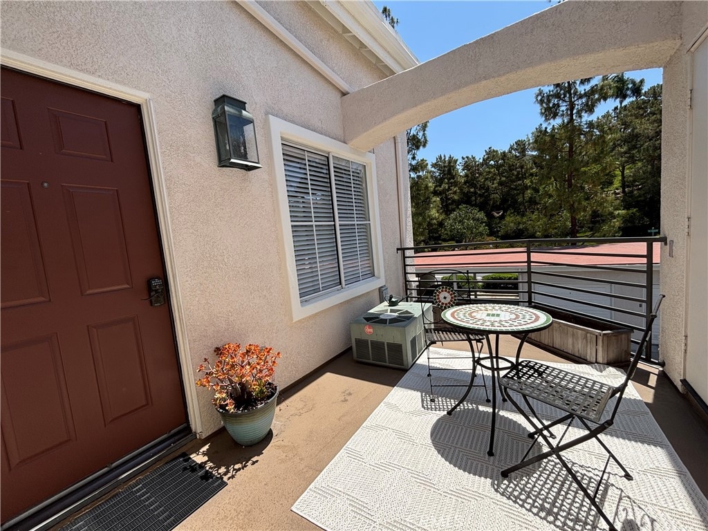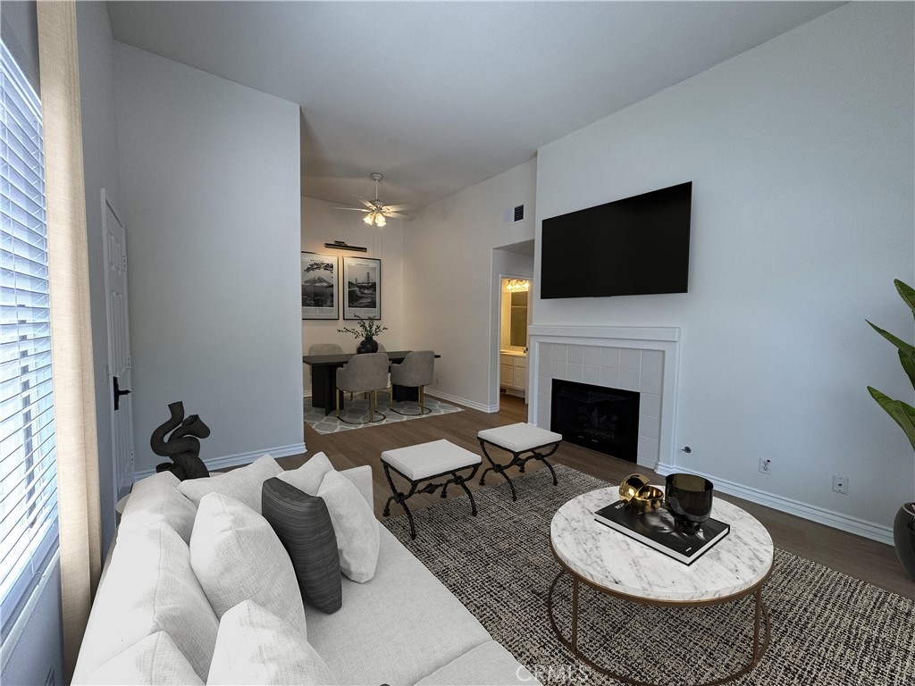 Welcome to this beautifully updated 2-bedroom, 2-bath upper-level end unit, offering an airy open layout filled with natural light. Vaulted ceilings and stunning luxury vinyl plank flooring enhance the spacious feel, creating a warm and modern living environment. Step through a gated private balcony—complete with a storage closet—where you can relax and enjoy serene views. The generous living room is bathed in sunlight from abundant windows and features a cozy fireplace, perfect for relaxing or entertaining. The bright and functional kitchen is equipped with stainless steel appliances, including a gas stove, built-in microwave, refrigerator, and dishwasher. A dedicated dining area offers a welcoming space for meals and gatherings. Retreat to the expansive primary suite, which boasts two closets with mirrored doors, an ensuite bathroom with a large vanity, and a beautifully updated shower. The second bedroom is well-sized, ideal for guests or a home office. The home also includes a convenient in-unit laundry room with washer and dryer included. Additional highlights include central Air Conditioning, a one-car garage and the option to secure an additional parking spot (based on availability and for a fee). Nestled in the highly sought-after Costa Brava community of Laguna Niguel, residents enjoy access to fantastic amenities such as a resort-style pool, relaxing spa, tot lot, and ample guest parking. Perfectly situated near shopping, dining, scenic Laguna Niguel Lake and Regional park, hiking and biking trails, Dana Point Harbor, world-class beaches, award-winning schools, and with easy access to the toll road.