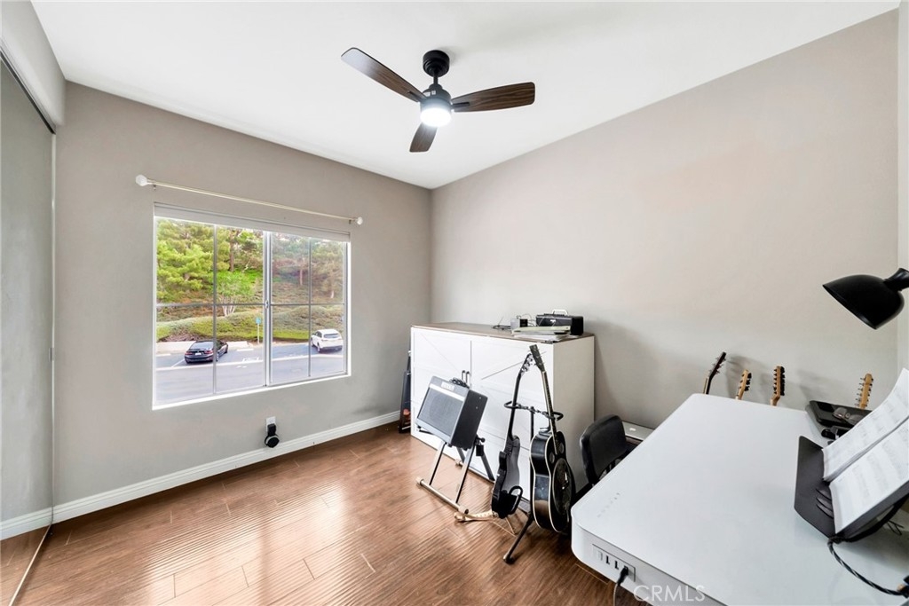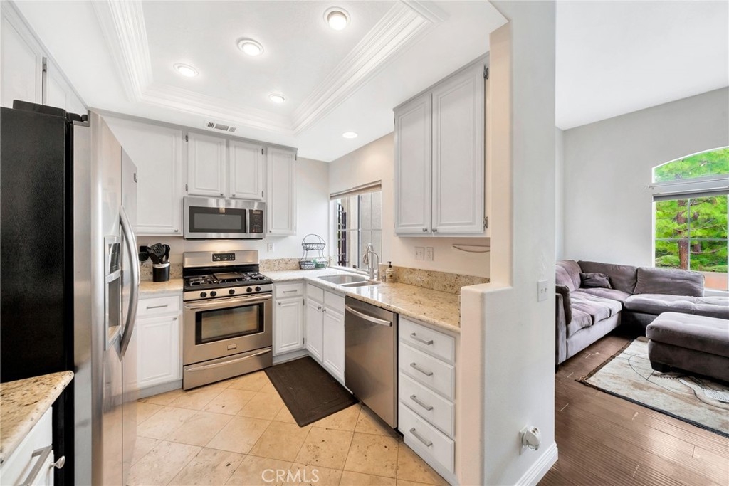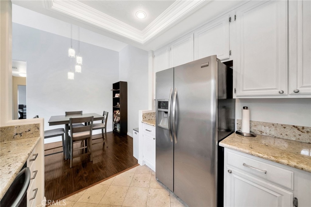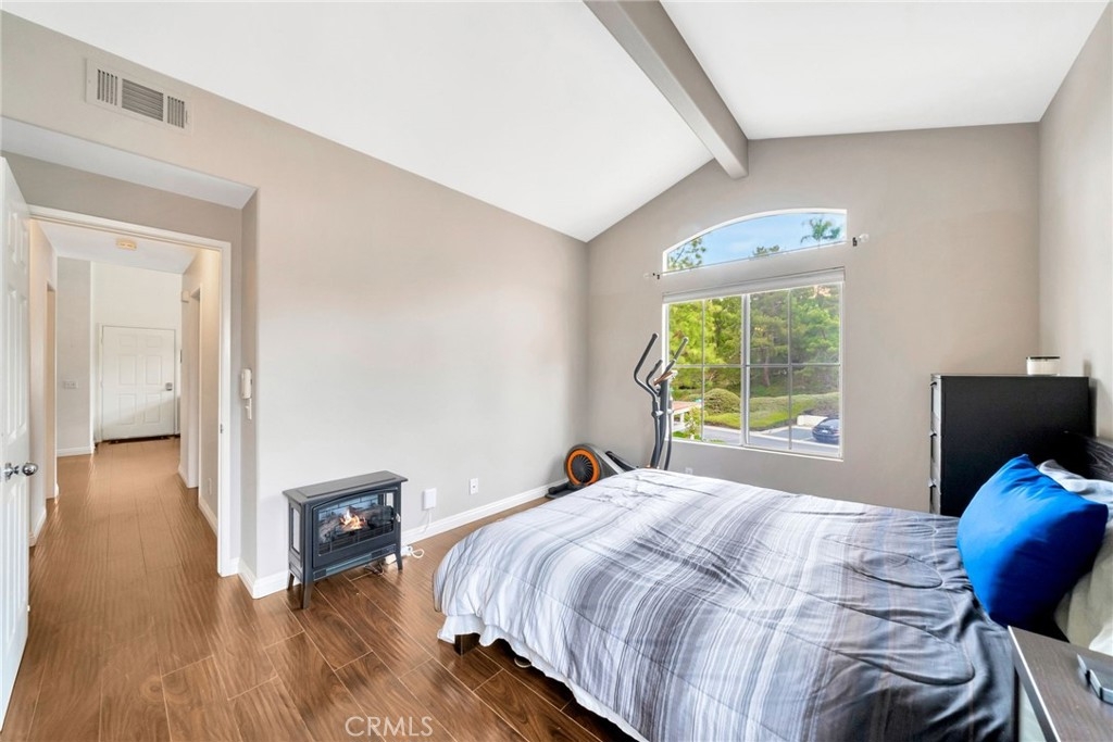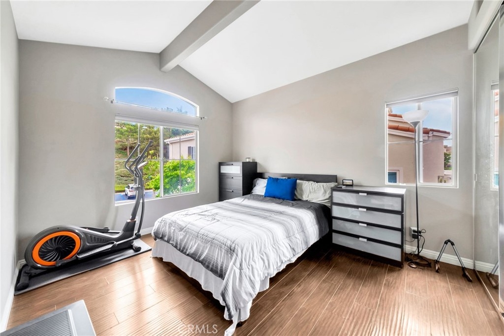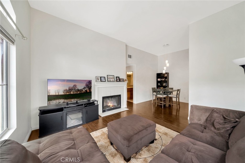 Welcome to this beautifully updated upper-level condo in the highly desirable Costa Brava community of Laguna Niguel. This bright and inviting 2-bedroom, 2-bathroom residence offers a thoughtfully designed layout that suits a wide range of lifestyles. Start your day on the charming front patio, perfect for morning coffee or evening relaxation. Inside, natural light floods the spacious living room, complete with a cozy fireplace and elegant hard surface flooring that extends throughout the home. The open-concept living and dining areas seamlessly connect to a modern kitchen featuring stainless steel appliances, generous cabinetry, and ample counter space, ideal for both everyday living and entertaining guests. The serene primary suite boasts vaulted ceilings, a large closet, and a private en-suite bathroom. A well-sized secondary bedroom includes a spacious closet and easy access to the second full bathroom with a walk-in shower. Additional features include in-unit laundry and a detached one-car garage conveniently located directly across from the unit for secure and easy access. Residents enjoy access to exclusive community amenities including a sparkling pool and spa. All this is just minutes from scenic parks, hiking and biking trails, Laguna Niguel Lake, world-renowned beaches, shopping, dining, and top-rated schools.
