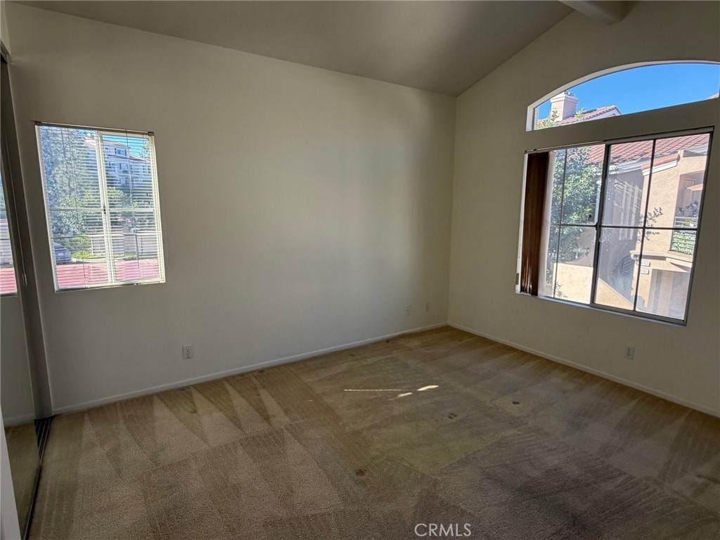 Costa Brava upper unit condo in scenic Laguna Niguel. Gated entry leads into a private sunny patio. Custom front door leads into the open living room with gas burning fireplace. High vaulted ceilings throughout the main living and bedroom spaces allow for volume and space. As an end, upper unit, windows on sides and front allow plentiful natural light throughout. A dedicated dining area is off the kitchen. The kitchen has convenient appliances and good counter space. Primary bedroom with en suite bathroom, two mirrored sliding closets. The second bedroom has sliding closet storage and hallway bathroom with shower over tub. Additional amenities include a whole house repipe, updated furnace and air conditioning systems. Separate laundry room with washer and dryer hookups plus storage cabinetry. One car garage parking and guest parking as available. The Costa Brava community has a beautiful pool and spa complex conveniently down the path from this condo. Optional membership to The Club at Rancho Niguel right up the street, offering tennis, pickleball, volleyball and racquetball courts, in addition to pools, gym, playground and picnic areas. Another highlight of this area is being a block from the Laguna Niguel Regional Park, featuring acres of nature surrounding a 44-acre lake and the site of the city fireworks show every 4th of July. Restaurants, shops, high rated schools and easy access to 73 and 5 freeways are all within minutes, providing an outstanding location and opportunity!