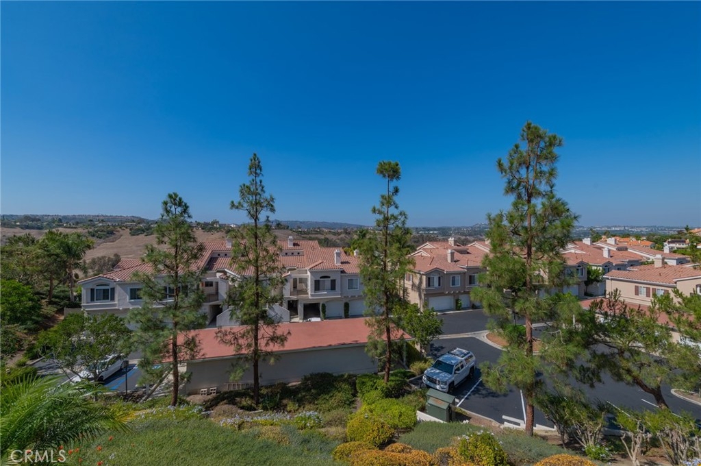Welcome to this bright and inviting home in the desirable Costa Brava community, offering open space, natural light, and sweeping panoramic views. The spacious living area features vaulted ceilings and connects seamlessly to the dining room and kitchen, creating an easy flow for everyday living and entertaining. The main floor includes a comfortable primary suite with a private bath and ample closet space, plus a secondary bedroom perfect for guests or family. Upstairs, the versatile loft with its own full bath can serve as a third bedroom, office, or flex space. Enjoy the large private balcony ideal for outdoor dining or relaxing while taking in the view. Additional features include an attached one-car garage with direct access, a detached garage, Nest thermostat and sensors, plantation shutters, and ceiling fans. Costa Brava residents enjoy a pool, spa, and playground, with nearby trails around Laguna Niguel Lake and Aliso & Wood Canyons Park. Conveniently located near shopping, dining, beaches, and major freeways, and with optional membership to The Club at Rancho Niguel offering tennis, pickleball, gym, and more—this home combines comfort, function, and the best of South Orange County living.