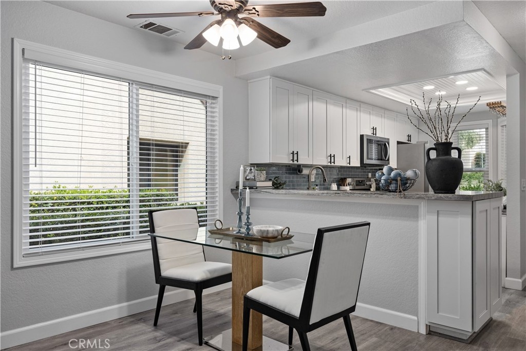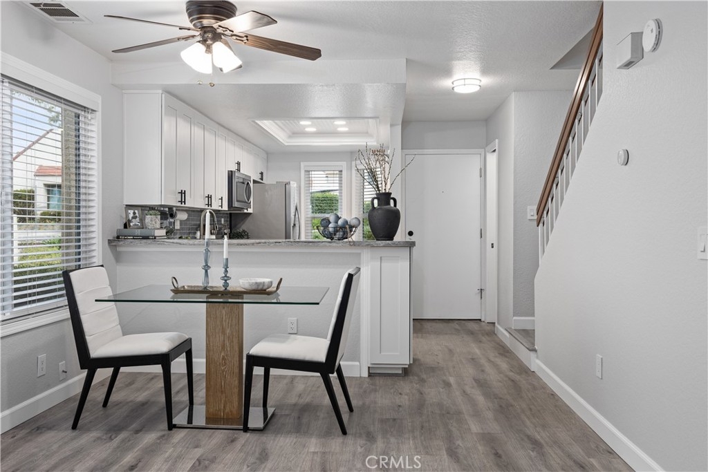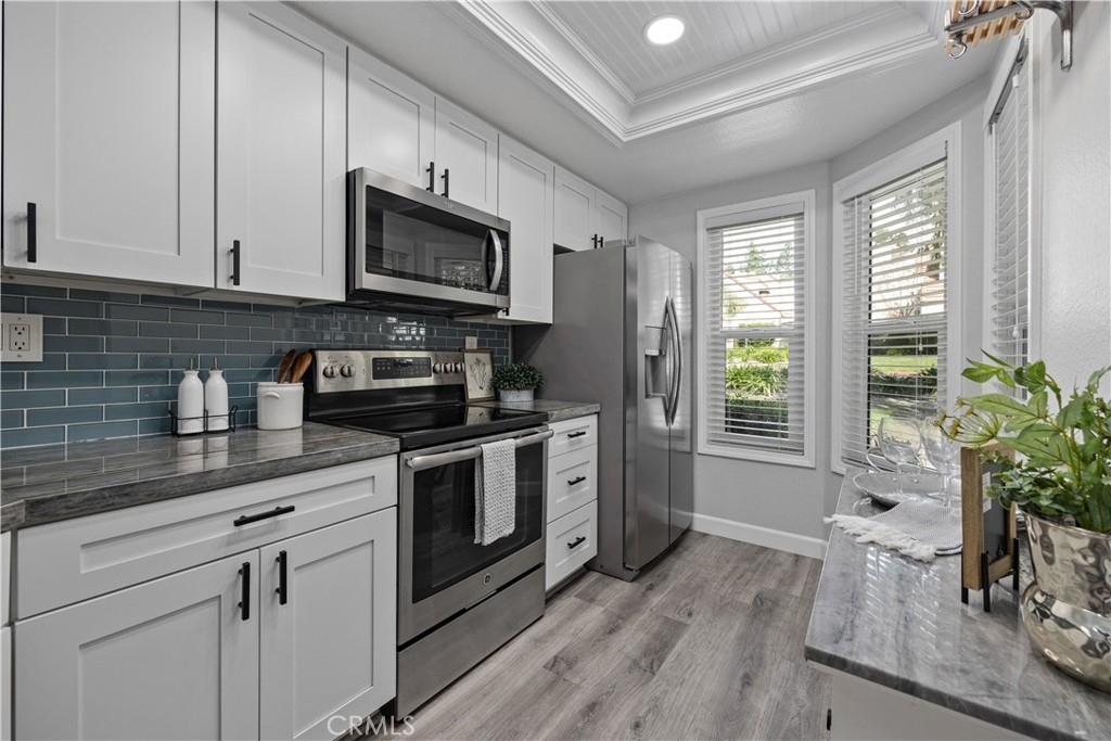 Welcome to your own slice of paradise in Laguna Niguel! This fully renovated 1-bedroom, 1.5-bathroom end unit condo offers a light-filled open floor plan, situated in a highly sought-after neighborhood! Step inside to discover a meticulously remodeled interior featuring luxury vinyl plank flooring throughout, creating a modern and seamless aesthetic. All new custom windows feature custom window coverings. The recessed lighting and fresh paint provide a bright and inviting atmosphere. Get ready to cook and entertain guests with both style and functionality! This renovated kitchen has been tastefully completed with quartzite countertops, new cabinets with pull-out drawers, stainless steel appliances including a steam self-cleaning oven, and Ruvati workstation sink. The upstairs bedroom is spacious and complete with a walk-in closet. Updated bathrooms with stone countertops. The skylight feature floods the space with natural light, while a blackout shade ensures peaceful rest when needed. No detail has been overlooked in this home! Did we mention the updated PEX piping? Or smart Lutron lighting throughout? Outside, the private enclosed patio provides the perfect spot to relax. For those who love the outdoors, this condo is ideally situated near hiking trails and a community dog park. With the beach just a short drive away and easy access to major freeways, highways and the 73 Toll Road, you’ll have everything you need right at your fingertips. Don’t miss out on this beautiful one-of-a-kind condo! Come see it today!