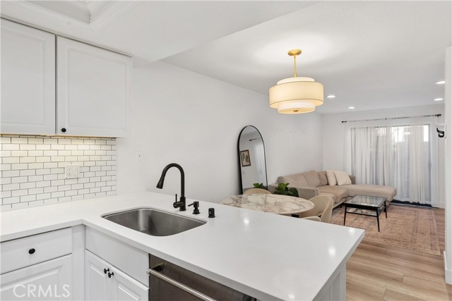 Welcome to this well-maintained bottom-level condo in "Crystal Cay" Laguna Niguel. The kitchen features quartz countertops, Kenmore high-end appliances, a large single-basin stainless steel sink, a range hood, a backsplash, and recessed lighting. The home boasts updated luxury vinyl plank flooring and a fresh clean look throughout. The master bedroom suite includes a large patio, en-suite bathroom, and mirrored closet doors. The second bedroom is adjacent to the hall bathroom, which includes its bathroom as well. The family room includes a fireplace. The condo comes with a designated carport for one car with storage and extra parking for a second car or overnight guest. Enjoy nearby walking trails, a dog park, and easy access to shopping, grocery stores, restaurants, and entertainment, as well as close proximity to an award-winning elementary school. The location is topped off with being minutes away from world-class beaches and resorts.
