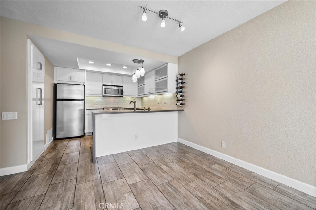 Experience the charm of Laguna Niguel in this beautifully updated 2-bedroom, 2-bath turn-key home, nestled within the highly sought-after Crystal Cay community. Upon entering, you’ll immediately notice the open-concept living room, complemented by a welcoming fireplace and a direct view of your stunning kitchen. The modern kitchen features a peninsula design with a quartz waterfall countertop, soft-close cabinets, an expanded pantry, Carrara marble tile backsplash, and stainless steel appliances. Moving down the hallway, you'll find a convenient laundry closet w/ stacked washer and dryer, the updated guest bathroom, and both bedrooms. The primary suite offers plenty of space, an updated en-suite bathroom, and a large private enclosed patio. Additional features and upgrades include two private patio spaces, tile flooring throughout the entire home, dual-pane Milgard windows, a French door, central air conditioning and heating, and more. Community amenities include a dog park, multiple pools and spas, greenbelts with walking paths, and access to hiking trails. The home is centrally located, with easy access to shopping, schools, highways, and is just 5.5 miles from the beach. This home is sure to sell quickly, so don't miss your chance to make it yours!