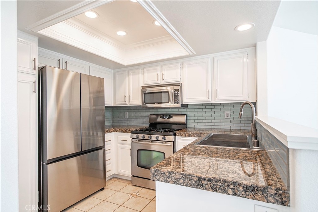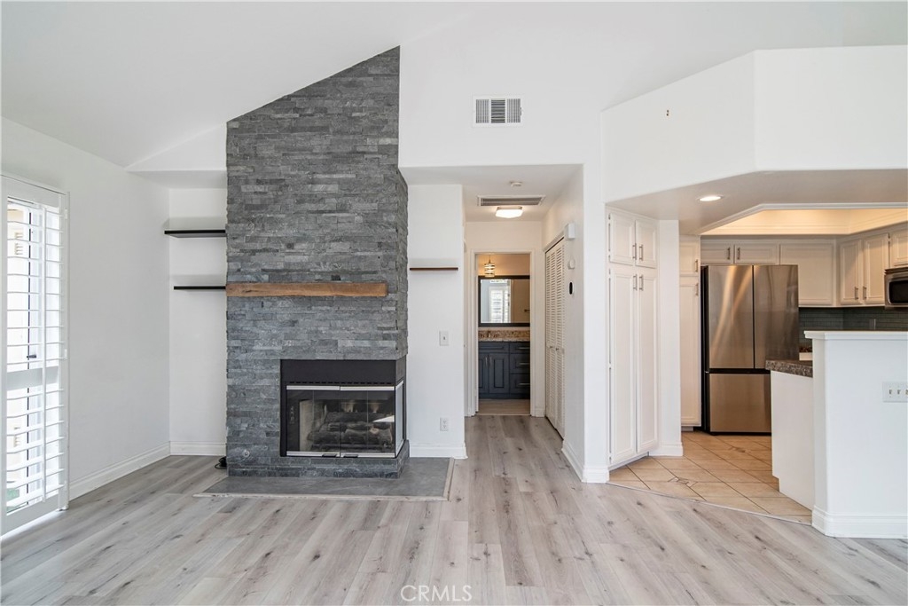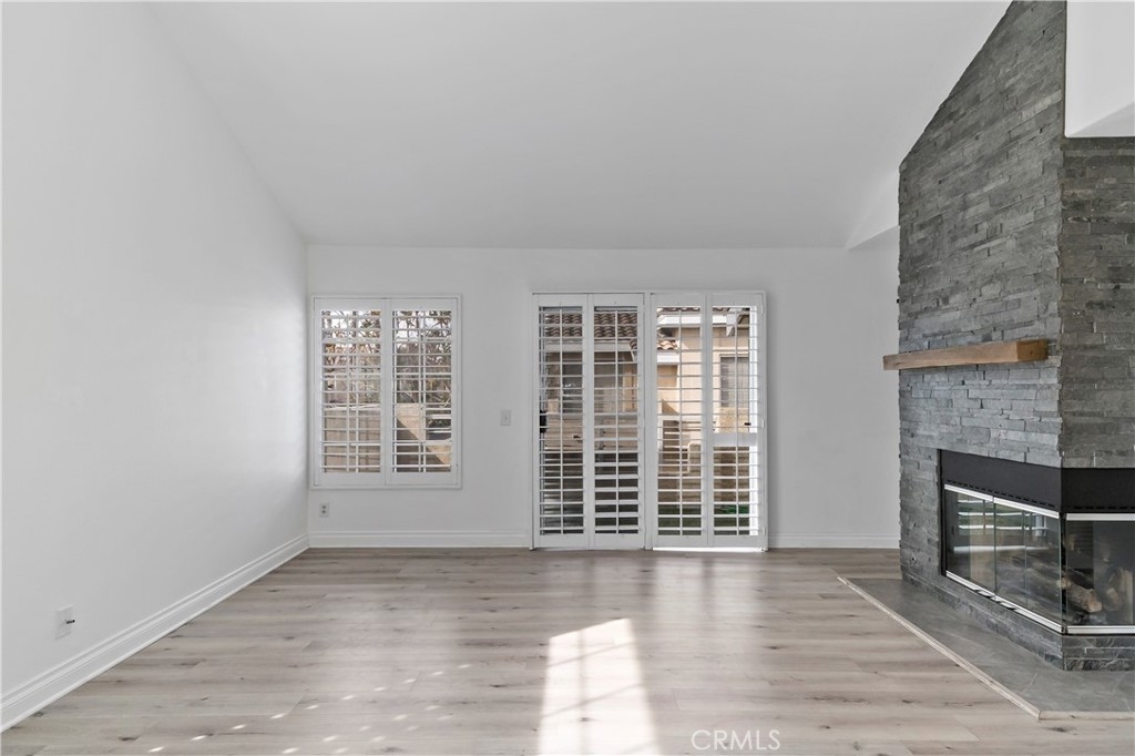 Adorable remodeled condo in desirable Del Prado Community. Nice private end unit with direct garage access from the first floor. Open floor plan with high ceilings and lots of windows making it bright and airy. Large living room with cozy fireplace surrounded by slate stone. Plantation shutters throughout the unit and beautiful plank flooring. Nice U Shape kitchen with granite countertops, subway backsplash, recessed lights and stainless steel appliances. Beautifully updated bathroom with dual sinks, new cabinet, new bathtub tiles & new fixtures. The main bedroom has a picture window with plantation shutters, ceiling fan, barn door access to bathroom and huge walk-in closet. Nice balcony off the living room with artificial grass, perfect to grill and relax. Gigantic attic space for storage with easy access through a pulldown ladder in bathroom. Convenient inside laundry closet (washer and dryer are included). The HOA dues include water, trash, access to two pools, spa, neighborhood park and lofts of open space green areas. Close to shopping, theaters, restaurants and minutes away to beaches and resorts. A delightful condo to call home! Won't last!