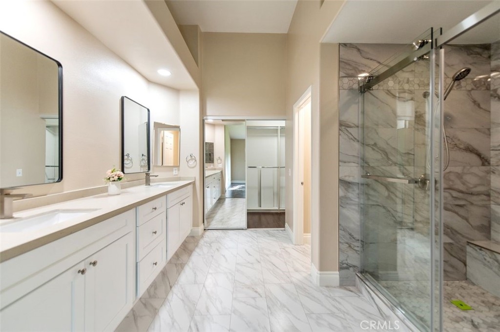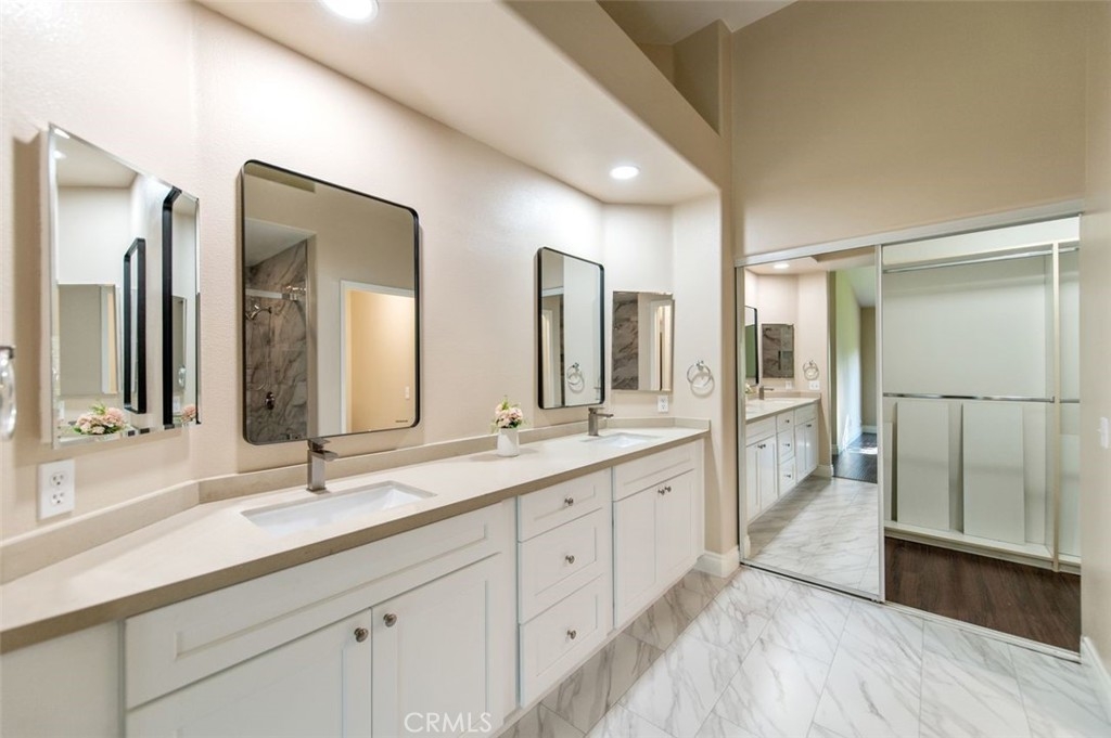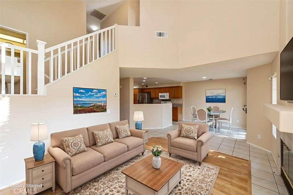Del Prado II spacious 2 bedroom 2.5 bath condo has a great open floor plan! Sunny and bright first story great room with fireplace, dining room and kitchen. The spacious great room has large greenbelt view and high ceiling living room. 2 master suites on 2nd story provide privacy for each other. Master bedroom has brand new shower, custom dual sinks new vanity set with soft close drawers, new mirrors and and new floorings. Master walk in closet has plenty of shelves and mirror doors. Junior master is also roomy to include a large closet with sufficient drawers inside closet. House is just a short walk to pool, spa, & clubhouse. Nice and quiet interior location with lots of extras. Laundry area is on excluded platform in garage with a whole wall of storage cabinets. All schools have high ratings.