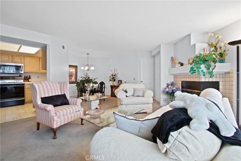Charming downstairs CORNER unit with two bedrooms , two bath condo in Community of Del Prado of Laguna Niguel with newer paint and carpet flooring in the last few years . Great size family room with fireplace and carpet flooring and sliding doors that open to patio which makes this home very bright with lots of natural light separate dining area to sit and enjoy dinner time . Kitchen is open to family and dining area with plenty of cabinet space and ceramic countertops and vinyl flooring . Great size Master bedroom with carpet flooring opens to the the patio to sit and enjoy morning coffee . Master bath with dual vanity, large master bath and shower combo great size closet space . Two attached car garage with plenty of space for storage . Onsite laundry in the garage for convenience . Newer Furnace , water heater , and microwave . Community features swimming pool. This community is minutes away for all the shopping , freeway and beach. This unit has it all .