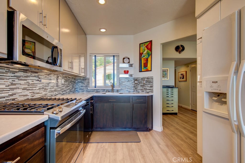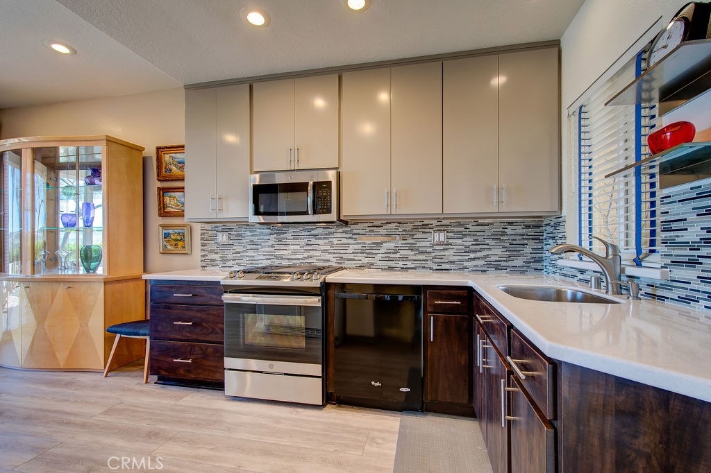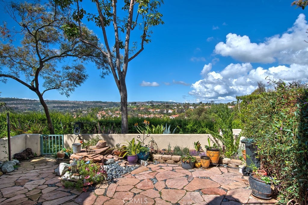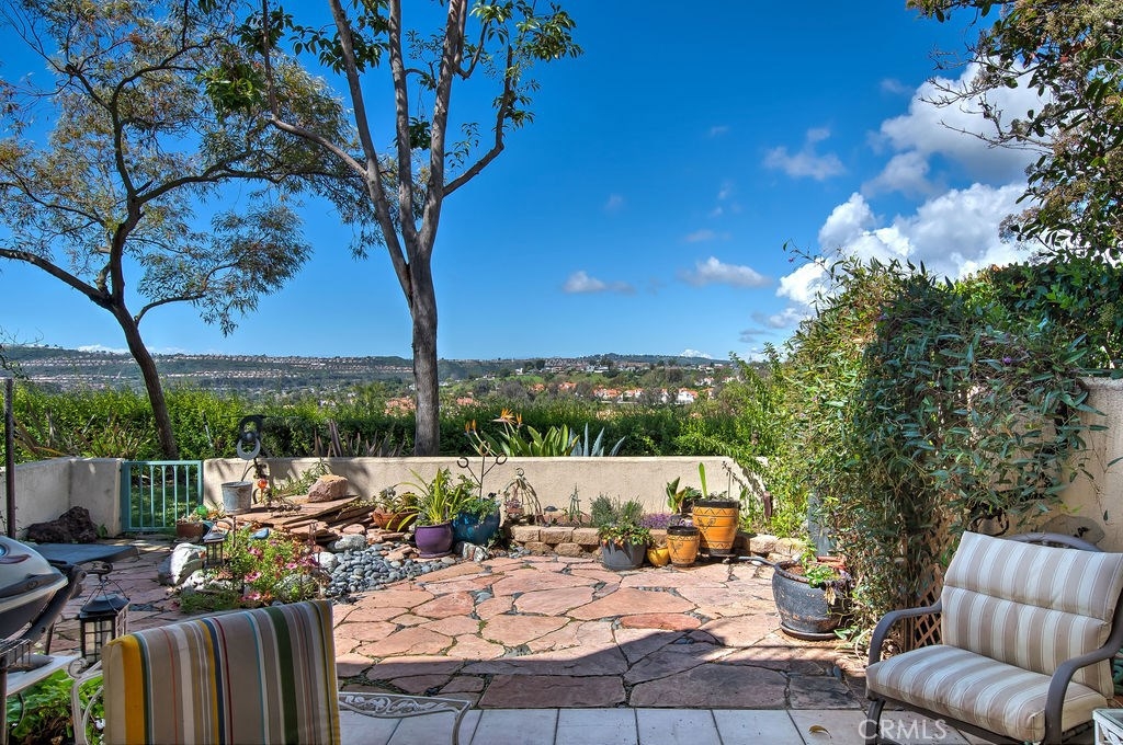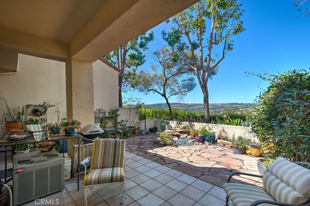 PANORAMIC VIEWS & UNIQUELY, LARGE PATIO FROM WHICH TO ENJOY. You’ll love this condo with amazing views of Niguel Summit and surrounding hillsides. Enjoy these beautiful views from every living area & bedroom in this home. Best of all, it’s located in the desirable, Encore community inside Marina Hills. Featuring 2 Bedrooms, 2.5 baths. Kitchen has been upgraded with cabinets, counters, glass, tile backsplash and stainless steel stove and microwave. The open concept living room and eating area feature 2 sets of sliding, patio doors creating a bright, open area, while bringing the gorgeous views inside. Enjoy privacy & spectacular views on the oversized, outdoor patio area. Lots of room to entertain and create your own outdoor oasis. Home also features luxury vinyl flooring throughout first floor, newer windows, REPIPED w/PEX, newer water heater, recessed lighting, newer toilets, inside laundry room, direct access 2 car garage. Resort style amenities include pool & spa along with access to the Marina Hills Olympic size pool, clubhouse, parks, tennis & sports courts. Close to hiking/biking trails…all the way to ocean without crossing any busy streets. Shopping, schools, dining, beach & harbor all just minutes away. Virtual Tour: https://my.matterport.com/show/?m=VNZuA1vawSM&brand=0. Don't miss this lovely gem!