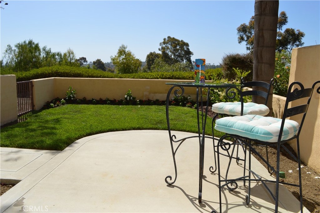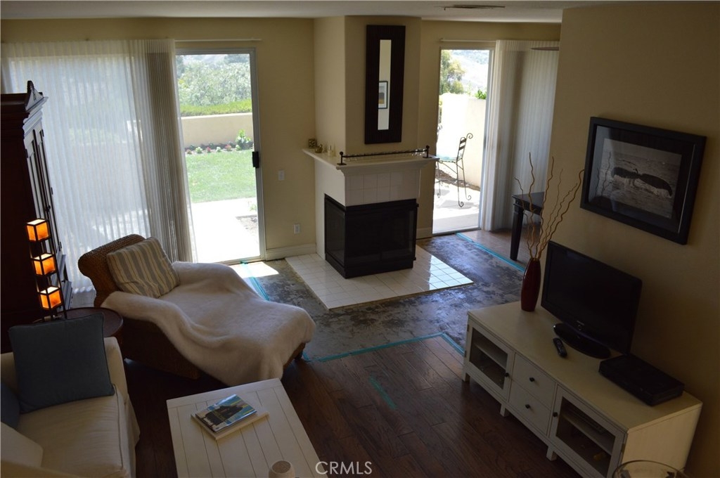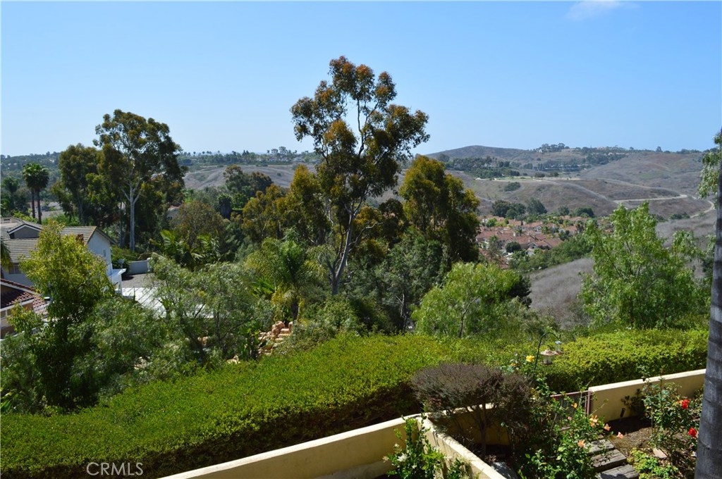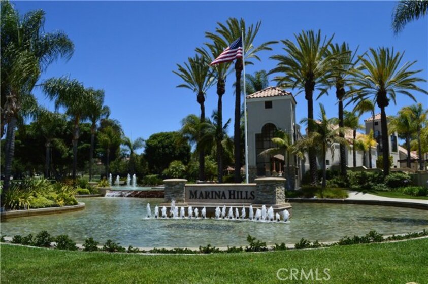 BREATHTAKING VIEW TOWN HOME with DUAL MASTER SUITES. Enjoy the ocean breeze in your private grassy back yard. Full-length driveway on a cul de sac in the prestigious Marina Hills’ community of Encore. This townhome boasts one of the best locations within Encore at the edge of a long greenbelt with panoramic views of the hills, mountains and stars at night. Light bright open kitchen. Large living room and separate dining room with a designer ceiling fan plus a cozy fireplace to be enjoyed from both rooms. Easy access to the back yard from both the living room and dining room. Direct access two-car garage, inside laundry with built-in storage shelves. Downstairs guest bath. Wood floors on lower level (partial). Custom Ethan Allen window coverings throughout. Master Bedroom suite includes full bath with tub and shower, dual sinks, slate flooring. Bedroom has vaulted ceiling, motorized solar shade and relaxing balcony to enjoy the breezes and views. Second master suite also includes a full bath and vaulted ceilings. All new landscape including sprinkler pipes and heads and wired for landscape lighting. Short walk to the Encore Community pool area. Also enjoy Marina Hills’ community pool, six tennis courts, BBQ area and large park. Easy access to shopping: Albertsons, Starbucks, CVS, etc. Close to hiking and biking trails and short drive to Dana Point Harbor, Salt Creek Beach, etc.