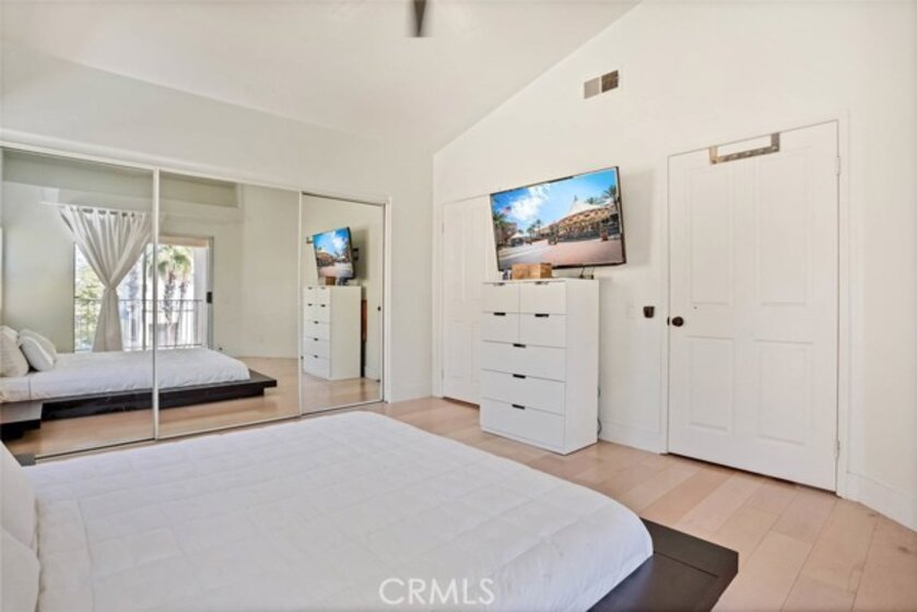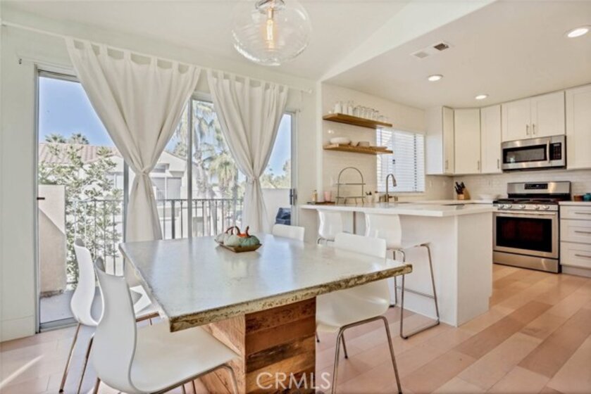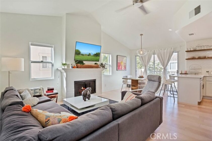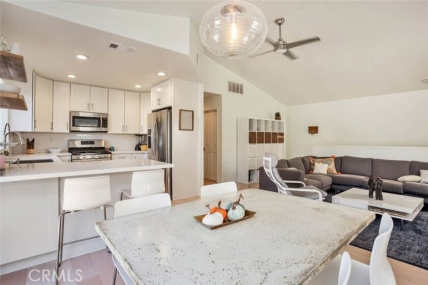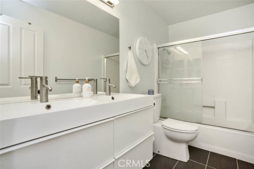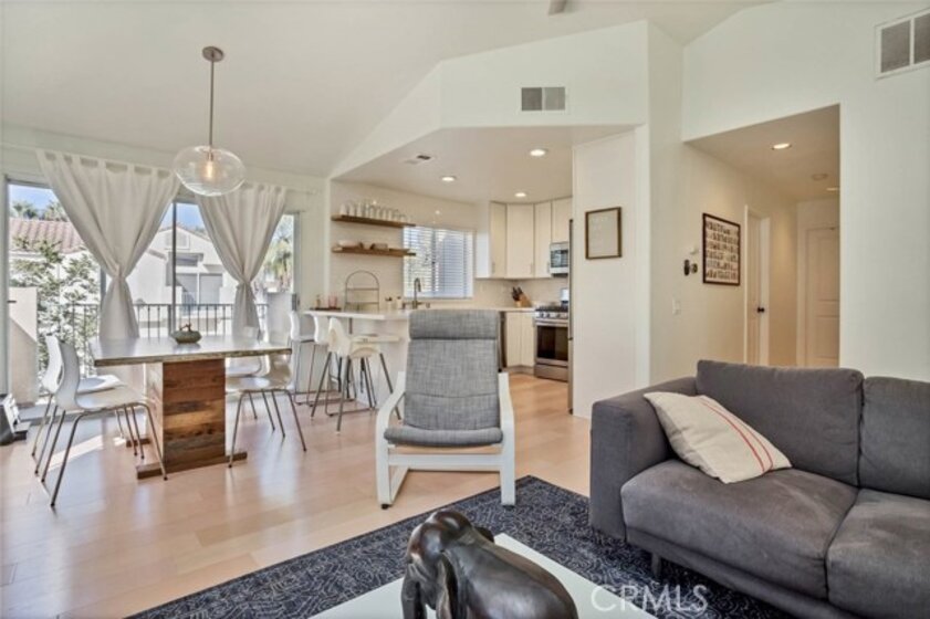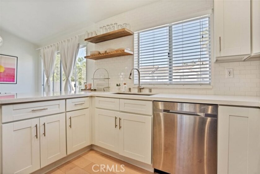 Fantastic Upgraded Encore property. This 2 bedroom 2 bathroom upper unit is light and bright, open and spacious with a great covered balcony. Thoughtful renovations include a raised kitchen ceiling, completely new layout for a more functional kitchen area, with counter to ceiling subway tiles, completely new cabinets, quartz counter tops, new stainless steel appliances and large basin sink . Fresh new paint on all walls and beautiful new hardwood floors. Completely new HVAC system with a Nest thermostat will keep you perfectly cool even on the hottest day, while keeping your utility bills down. Upgrades in the bathrooms include new cabinets, vanity and sinks as well as new mirrors, toilets and flooring. The amazing advantage to this property is a two car garage with a driveway. The fantastic association offers pools, spa, clubhouse, and tennis courts, lots of biking and hiking trails that lead to the beach make this an excellent value that will not last