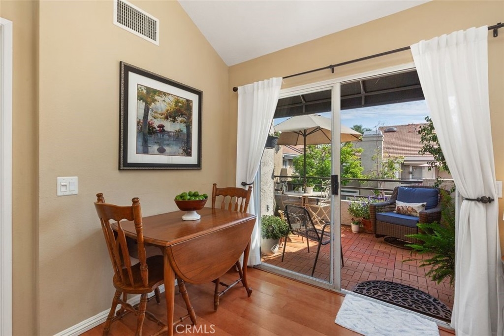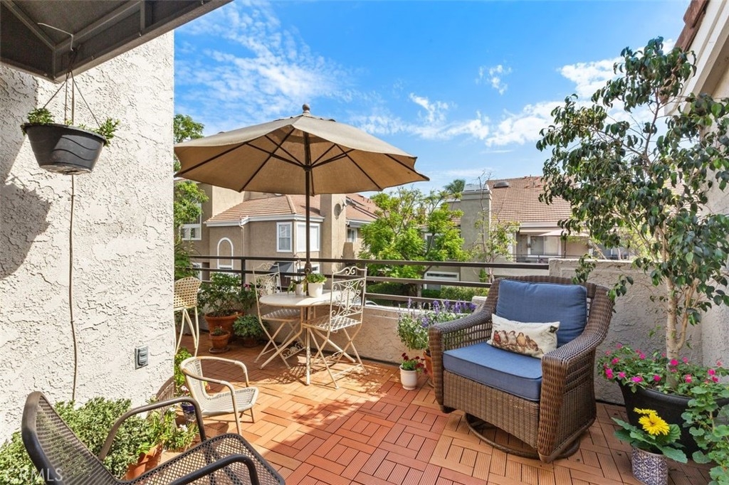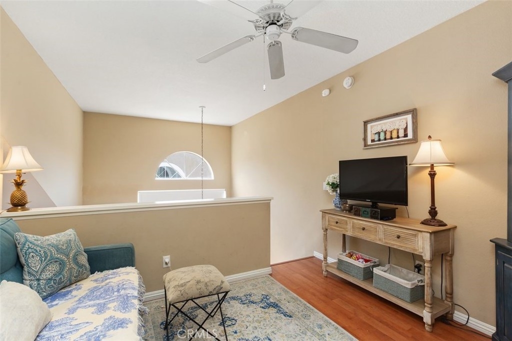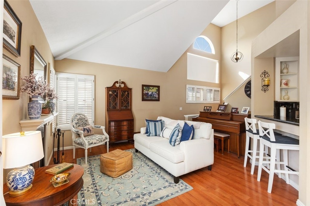 Discover the sought-after Expressions Community, where California living meets modern comfort. This stunning one-bedroom, two-bathroom townhome with an inviting loft offers a unique opportunity to enjoy a vibrant lifestyle. Step inside to find a thoughtfully designed floorplan featuring high ceilings and an open-concept kitchen that flows seamlessly into the spacious living area. The kitchen boasts a breakfast bar, perfect for casual meals or entertaining. Enjoy cozy evenings by the fireplace or bask in natural light from the sliding doors that lead to your private balcony patio, an ideal space for lounging, dining, or hosting friends. The primary bedroom is a serene retreat, complete with an en-suite bathroom featuring a double sink vanity and a walk-in closet. Convenience is key with a side-by-side washer/dryer laundry closet tucked away. The loft area, complete with its own bathroom, offers a versatile space for a home office, relaxation, or accommodating guests. Additional highlights include a one-car garage with direct access, laminate wood flooring throughout the main living areas and bedroom, and marble tiles in the kitchen and bathrooms. Enjoy the beauty of granite countertops and plantation shutters that enhance the windows. This well-maintained community features re-piped plumbing with Pex material, new roofs, and freshly painted exteriors. Low property taxes and association fees cover essential services like water and trash. Relax and unwind at the resort-style community pool and spa, complete with shower and bathroom amenities, plus shaded tables for outdoor gatherings. With excellent dining, shopping, and theaters just a stroll away, and easy access to the toll road, 5 freeway, and Costco, you're perfectly positioned to enjoy the best of Southern California. Nearby parks, beaches, and walking trails provide endless opportunities for adventure. Don’t miss the chance to make this exceptional townhome your own. Embrace the lifestyle you’ve always dreamed of in Rancho Niguel!