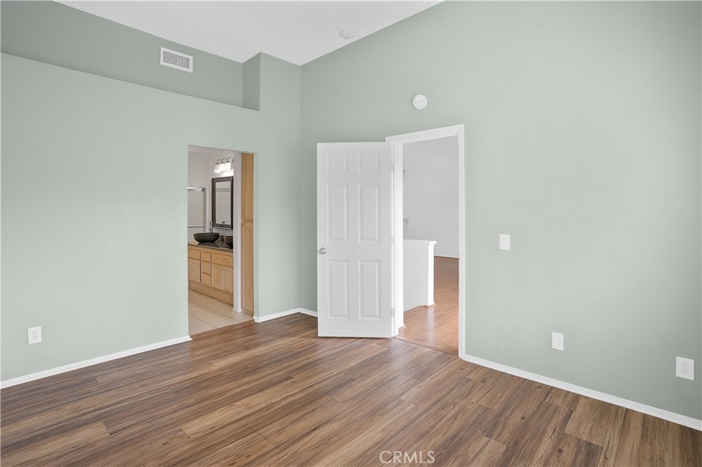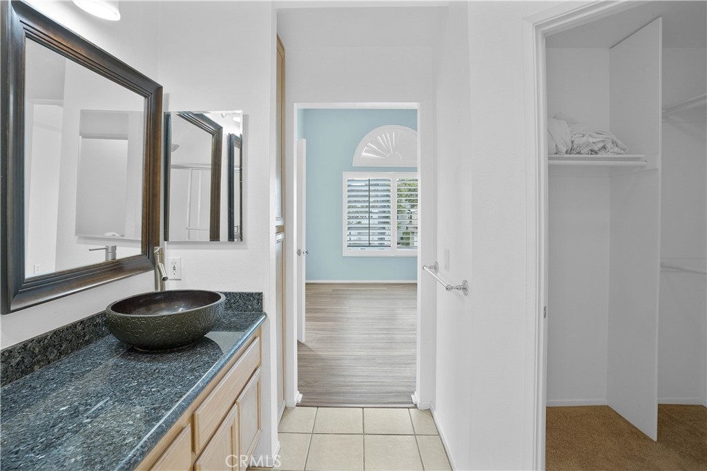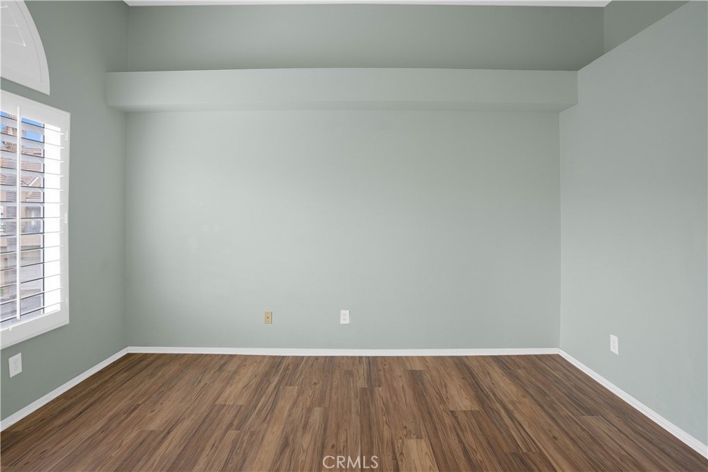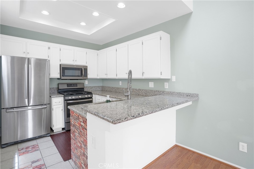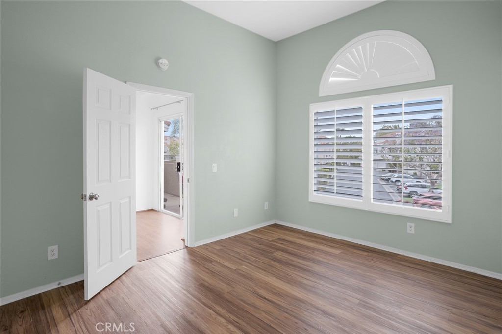 Fabulous one-bedroom + one-bathroom townhome ( no one above or below)located in the Expressions community of Laguna Niguel. Lite & Brite open floorplan with high ceilings. New paint. The kitchen has a granite breakfast bar open to the Living room, a Nuvia water filter, a fireplace in the living room, and access to the balcony. Laminate wood flooring is on the stairs, living room, and bedroom. A newer AC unit and garage door. Garage steps from the front door. The sizeable primary bedroom has plantation shutters, and the primary bathroom has an inside stackable washer/dryer closet, a newer granite bathroom countertop, new sinks, and a shower faucet. A one-car garage is next to the unit. The entire complex has been repiped, the roofs replaced, and the exterior painted. The association's dues cover water and trash. There is a resort-style pool and spa in the complex.
