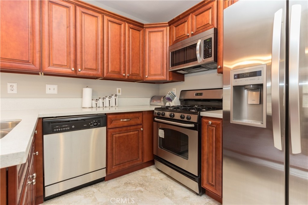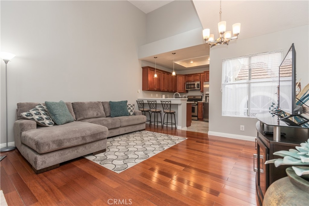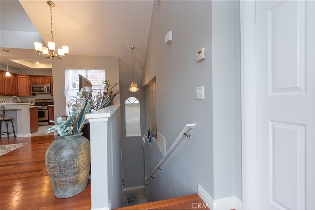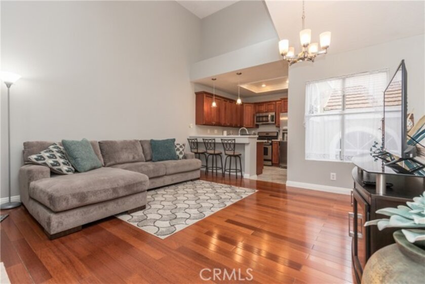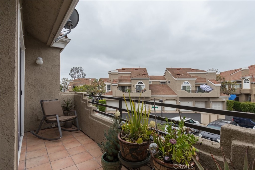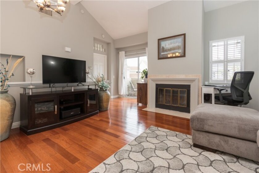 Welcome to this light and bright condo in the heart of Laguna Niguel! This private upstairs unit boasts wood floors, soaring vaulted ceilings, fresh neutral paint and an abundance of natural light streaming through the many windows. The main living space features an open concept with a lovely statement fireplace. Just off of the main living space is a private balcony where you can enjoy beautiful mountain views and enjoy the fresh air. The kitchen opens into the main living space and is nicely appointed with dark wood cabinetry, stainless steel appliances and modern solid surface countertops. The master suite is spacious and features a walk in closet. The dual sink bathroom showcases granite countertops and a skylight for added natural light. This space also includes the laundry closet for added convenience. Conveniently located near shopping, dining, freeway access and just minutes from some of the areas most beautiful beaches! This home is a must see!