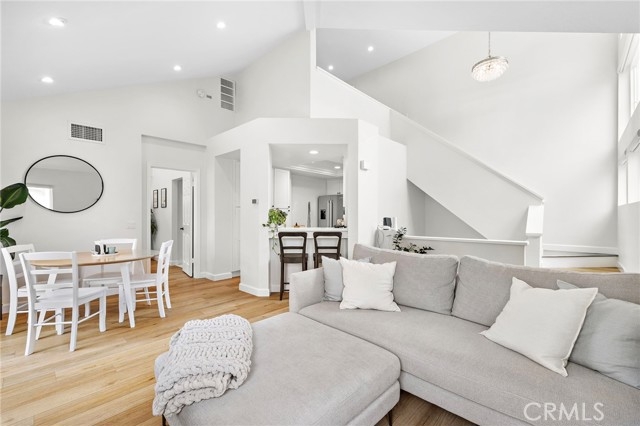 Completely reimagined, this one-bedroom plus loft residence in the Expressions at Rancho Niguel community blends modern upgrades with coastal ease. Thoughtfully remodeled from top to bottom, the home is defined by light-filled interiors, soaring ceilings, and a seamless sense of style. The living room centers around a stone-accented fireplace, framed by double-pane sliding doors that extend to a private deck finished with new waterproofing and lighting—an ideal retreat for morning coffee or evening gatherings. The adjoining dining area flows into a newly renovated kitchen featuring quartz counters, custom cabinetry with soft-close drawers, a tile backsplash, stainless steel sink, and Bosch and GE stainless-steel appliances. The primary suite offers direct access to the deck, a spa-inspired bath with new tub, shower tile, vanity, LED mirrors, and custom closet cabinetry. Upstairs, the spacious loft doubles as a guest retreat or home office, complete with its own remodeled powder bath. Every detail has been renewed: luxury vinyl plank flooring, recessed LED lighting with dimmers, energy-efficient dual-pane windows, and fresh neutral paint throughout. The garage has been transformed with epoxy flooring, custom cabinetry, overhead storage, and panel walls for optimal organization. Additional enhancements include upgraded laundry cabinetry, new plumbing and fixtures throughout, and custom light-filtering shades. Residents enjoy access to the community pool and spa, while the location places you minutes from Laguna Niguel Lake, Whole Foods, and the vibrant coastal lifestyle of Laguna Beach and Dana Point. With thoughtful design and an unbeatable setting, this home offers the best of comfort and convenience in the heart of South Orange County.