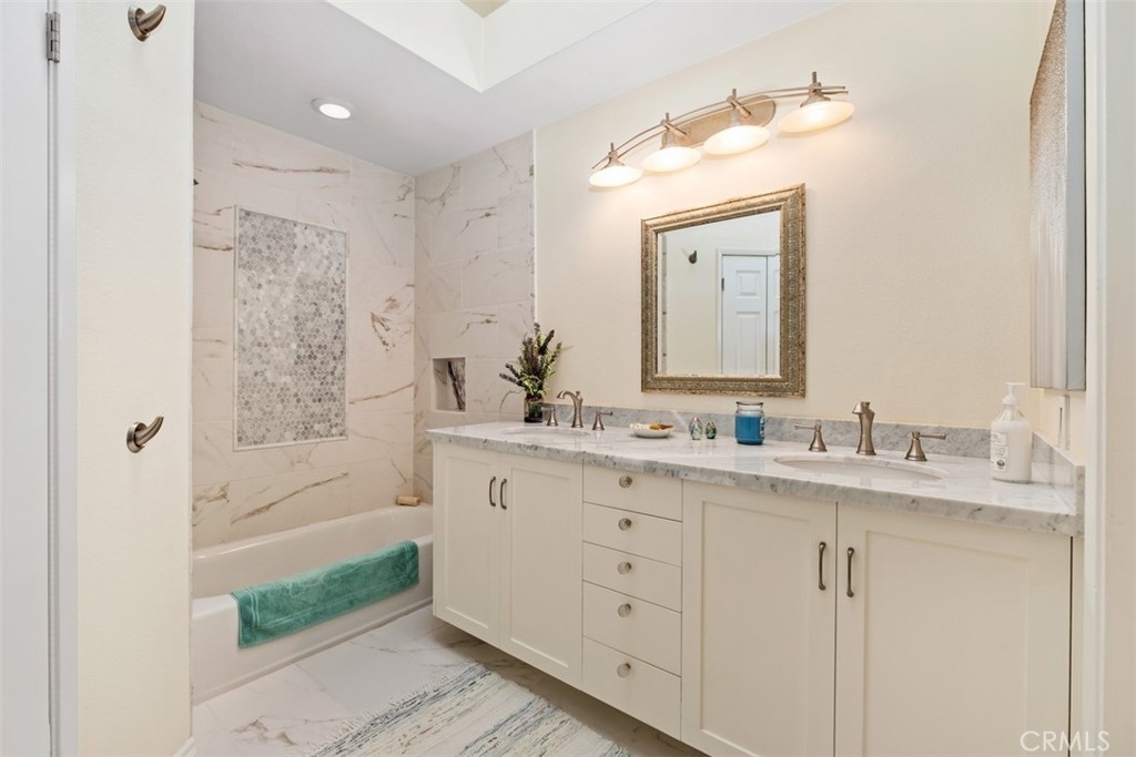 Welcome to this stunning home in the highly sought-after Expressions Community of Laguna Niguel. With its picturesque views and enchanting night lights visible from the front door, living room, and loft areas, you'll be captivated by the beauty that surrounds you. Natural light floods every room, highlighting the vaulted ceilings, vinyl flooring, and upgraded master bathroom. Cozy up by the gas fireplace or cool off with the whole house fan and air conditioning, ensuring year-round comfort. Park your car in the attached single-car garage or your private driveway. The master suite boasts elegant, engineered hardwood flooring and a remodeled bathroom featuring a spacious soaking bathtub/shower, dual vanity with marble countertops, ceramic flooring, and a walk-in closet. Conveniently located inside the home is your own private laundry area. The open concept living, dining, and kitchen areas create a seamless flow, ideal for entertaining guests. The upstairs loft, complete with a half bath, presents the opportunity to easily convert it into a second bedroom with a full bath, should you desire. Step outside and revel in the warm sunshine and gentle breezes on the expansive balcony, accessible through sliding doors from the living room and master bedroom. Whether you're hosting barbecues, entertaining loved ones, tending to your garden, or simply unwinding, this spacious balcony provides the perfect setting. This condo has undergone repiping and offers access to a community pool for your leisure. Conveniently located just minutes away from the CA-73 Toll Road, award-winning schools, shopping centers, dining establishments, and the beach, this property offers the epitome of Southern California living. Don't miss your chance to make this exceptional home yours.