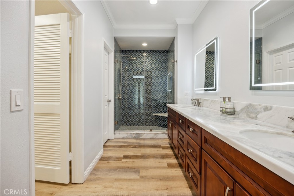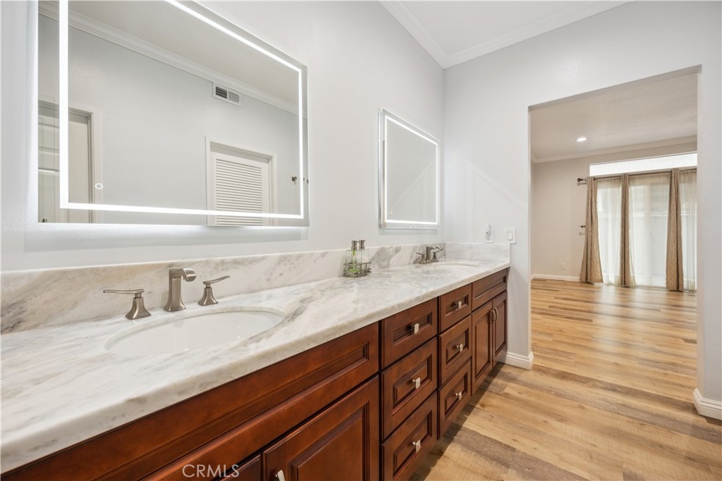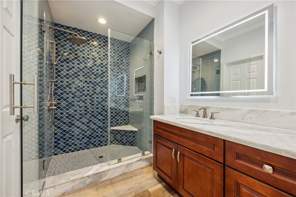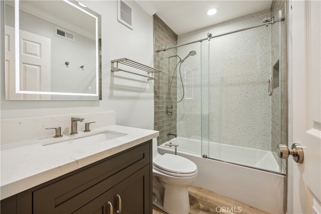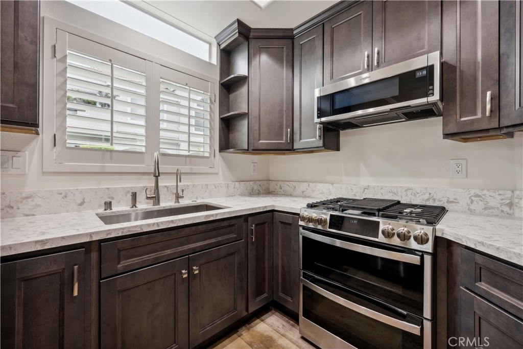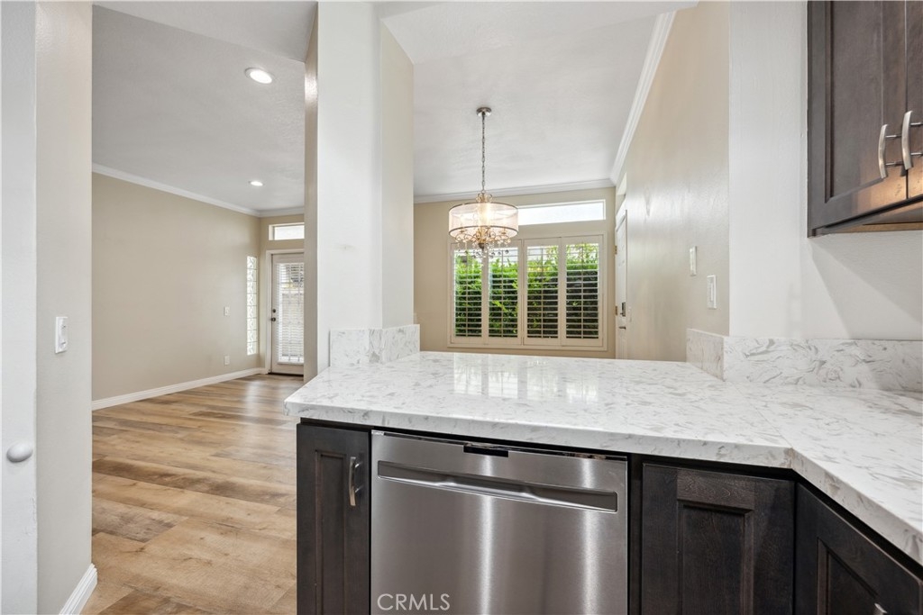 Easy access to END UNIT SINGLE level GROUND FLOOR home, Open Floor plan, A COMPLETE REMODELED HOME, PLANK WOOD/VINYL durable FLOORING and LIGHTS with DIMMERS throughout the entire home, Custom DESIGNED KITCHEN with EXTENDED BAR seating, QUARTZ Counters, Cabinets and Drawers with SOFT CLOSE, ENERGY STAR EFFICIENT GE STAINLESS APPLIANCES, REFRIGERATOR has interior FILTERED Water DISPENSER and ICE MAKER, Gas Range with 6 BURNERS with removable Griddle, DOUBLE OVEN with CONVECTION OVEN with WIFI Accessibility, Whirlpool Microwave, REVERSE OSMOSIS Water System in Kitchen, SPACIOUS FAMILY ROOM with GAS Fireplace, Newer DOUBLE paned VINYL windows, WOOD SHUTTERS in Living Room and Kitchen, CROWN MOLDING and RECESSED LIGHTING throughout, OVERSIZED PRIMARY BEDROOM with WALK IN CLOSET, CUSTOM BATHROOM, QUARTZITE COUNTER with Two Sinks, MODERN TILED SHOWER with SEAMLESS SHOWER DOOR, RAIN DIAL SHOWER HEAD plus HANDHELD SHOWER HEAD, Separate Toilet closet with TOTO toilet system, SECONDARY BEDROOM with custom buildout CLOSET with shelving and MIRRORED WARDROBE DOORS, HALLWAY bathroom has QUARTZ COUNTERS, TOTO toilet, Enclosed seamless glass TUB/SHOWER combination with MODERN TILES, SEPARATE LAUNDRY ROOM with newer LARGE Capacity TOP loading ENERGY STAR HIGH EFFICIENCY MAGTAG WASHER and DRYER, SINGLE CAR ATTACHED GARAGE with NEWER QUIET LIFT MASTER REMOTE CONTROL with sensor lights and camera with DIRECT access through Laundry into Home, Large PATIO with access from Family Room and Sliding Door from primary Bedroom, INSTALLED 2020 HVAC SYSTEM with HEPA ALLERGY FILTER and AMERICAN STANDARD ENERGY EFFICIENT AIR CONDITIONER, separate WATER shutoff for UNIT, EXPRESSIONS COMMUNITY was completely REPIPED in 2016 and OFFERS beautiful LANDSCAPED Grounds, Gated POOL and SPA with BATHROOMS and lounge chairs, CLOSE proximity to Toll Road, 5 Freeway, Local Shops including Movie Theatres, Restaurants, Fitness Centers, Mission Viejo Mall, Mission Viejo Hospital, Saddleback College, Costco, Schools, Laguna Niguel Regional Lake and much more. Homeowners Association dues include Water AND Trash.