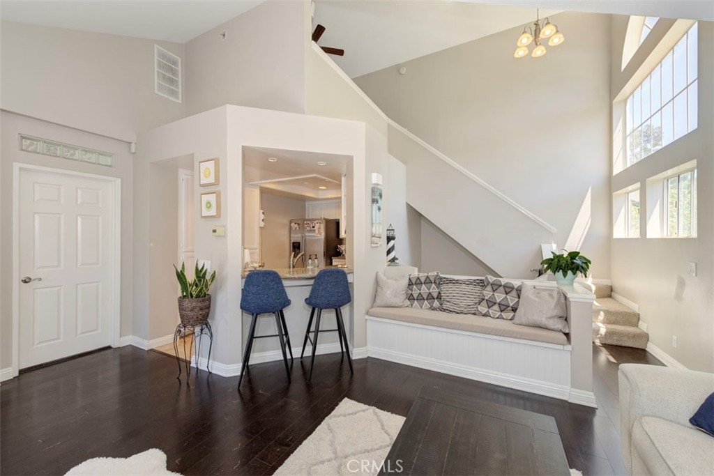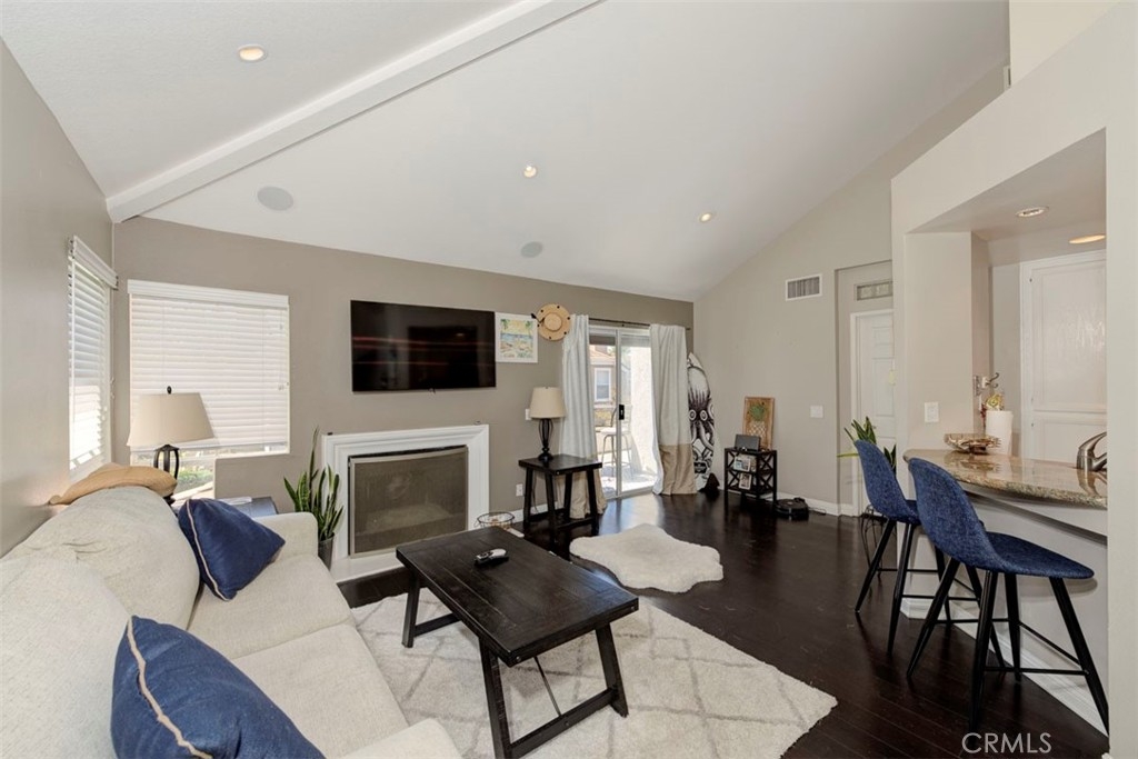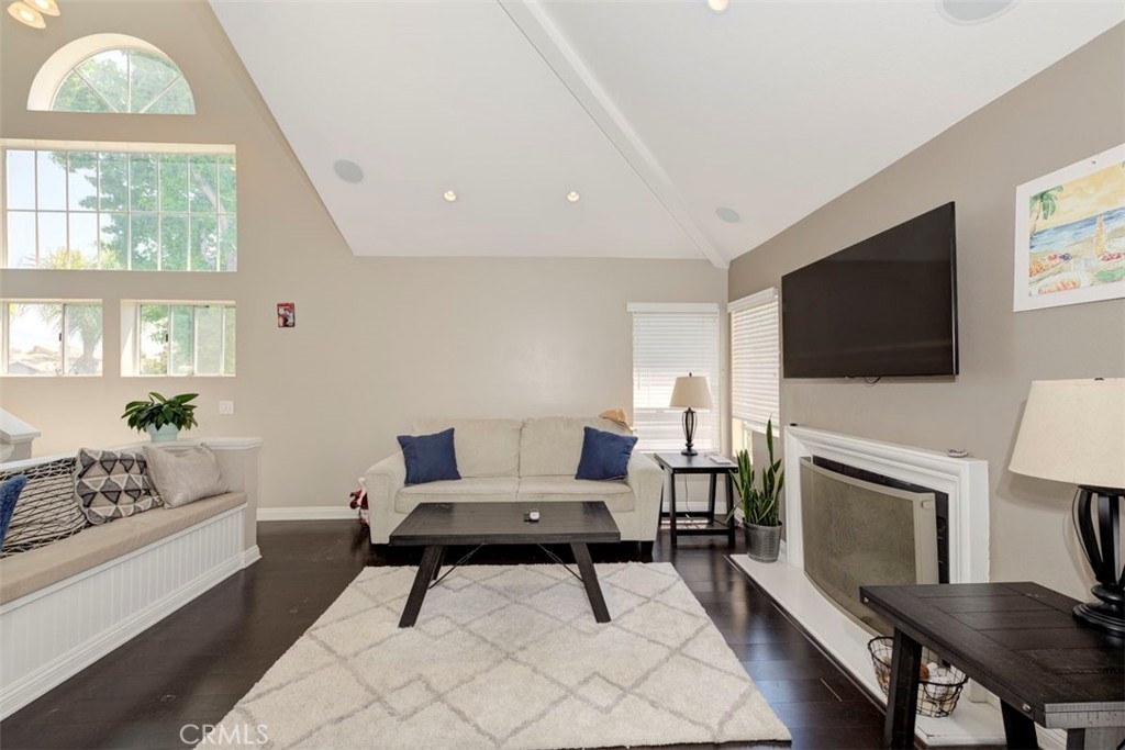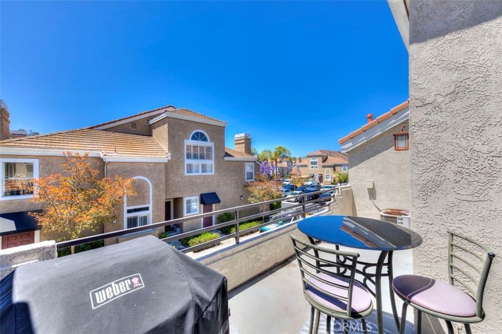 Buyer could not perform. Back on the market! Coveted end unit in highly desirable Laguna Niguel Lake District. This 1 BD + LOFT is close to shopping, high end restaurants, Lifetime Fitness center, elementary school, regional lake trails, and easy freeway and toll road access. Enter through front door green belt with attached one car garage to foyer with stairs to second level. Vaulted ceilings in staircase lead to a shared family room and dining space with cozy fireplace that invite you out on a large balcony. On the same level is the kitchen and master bedroom with in-closet laundry and master bath. Cathedral ceilings again lead the way to a very functional loft and half bath on third level. Lives like a two bedroom! Relax in community pool and spa!