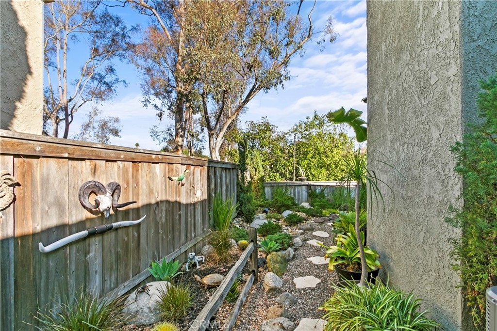 Tucked away in a private Laguna Niguel setting, this Foothill townhome offers the comfort of single-level living with the privacy and feel of a detached home. A picturesque pathway surrounded by lush greenery leads to an open, light-filled interior where dramatic high ceilings and multiple skylights evoke an airy, inviting atmosphere. The living room, with its cozy fireplace and sliding doors to the backyard patio, provides an ideal space for both relaxation and entertaining. A charming eating area enhances the kitchen’s welcoming feel, complemented by newer cabinetry and gleaming quartz counters. Sunlight pours in through sliding glass doors and a window above the sink, creating a bright, open atmosphere where the backyard's beauty feels like part of the room itself. This home features two spacious bedrooms and a flexible den or office that can be converted back into a third bedroom. The primary suite has soaring ceilings, a walk-in shower, and dual sinks. The open-air atrium just beyond the sliding doors provides a pleasant spot for potted plants, or the existing atrium has expansion potential for those who wish to enclose it and add extra square footage. The backyard is a peaceful setting for gardening, dining, or simply relaxing outdoors. Additional highlights include a tankless water heater, newer HVAC, and an attached two-car garage plus a driveway that accommodates two cars. Community amenities include a pool and spa, all in a tranquil, residential setting. Conveniently located to shopping, dining, freeways, Dana Point, and Laguna Beach.