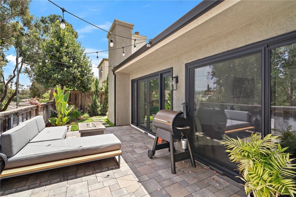 Investors dream! Tenant's lease is though June 13, 2026. Excellent tenant. Spacious two bedroom, single level condo with attached 2 car garage. This jewel has a private gated patio, upgraded: kitchen, bathrooms, floors, high end appliances, Fridge/ Washer & Dryer included. The best features are the tall ceilings, private patio and backyard. Wrap around yard with built in fire pit in backyard creates a nice ambiance for entertaining. Only minutes to the beach, shops, freeway and schools. Great location! Everything is easy to get to. Plus, this unit also has two car driveway! Guest parking is right beside home. Come and see this special get away, it's pleasantly surprising. The primary bedroom also features access to the patio, high ceilings, two large mirrored closets, custom shower and the secondary bedroom is side opposite the hallway. Only one shared wall and no one above you. No carpeting, all laminate flooring throughout. All walls have been painted white since pictures were taken. Includes a community pool, spa and clubhouse.