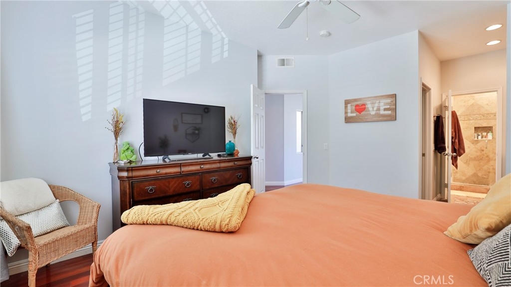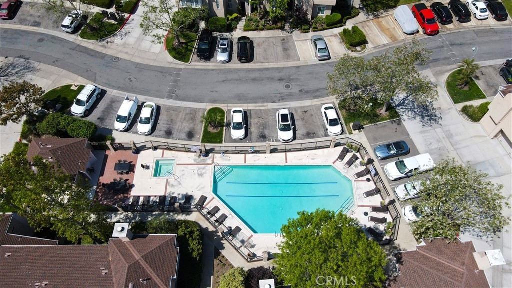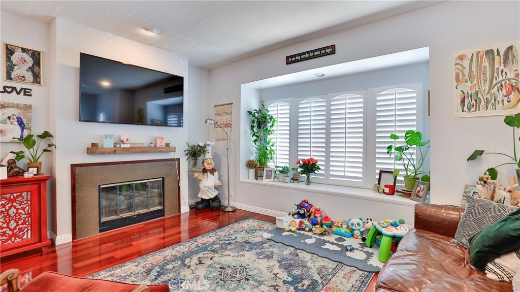 Beautiful 2 bed, 1.5 bath light filled condo in Hampton Village with pool & spa and close to all amenities and freeways. This lovely end unit has hardwood floors throughout most of the unit. Downstairs is an entry foyer with access to the garage and private laundry room. Upstairs is a large family room with fireplace, this area has beautiful large windows with plantation shutters. The updated spacious kitchen has granite counters, lots of storage and a modern neutral palette. There is a corner dining area just off the kitchen. The large master bedroom has a walk in closet, an ensuite bathroom with dual sinks and large walk-in stone shower. Adjacent to this is a half bath for your guests. The second bedroom is also a good size with mirrored closet doors and access to the patio area. The unit is just across from the pool and Hampton Village is next to a convenient shopping area.