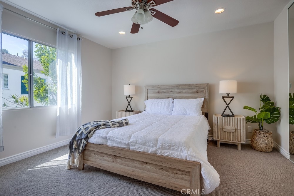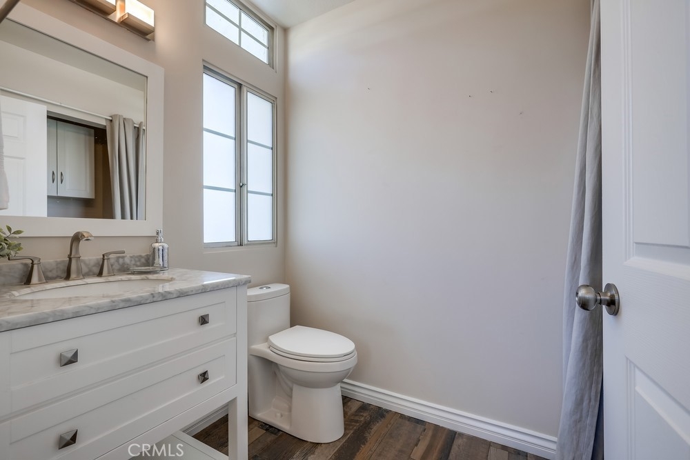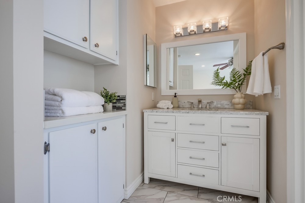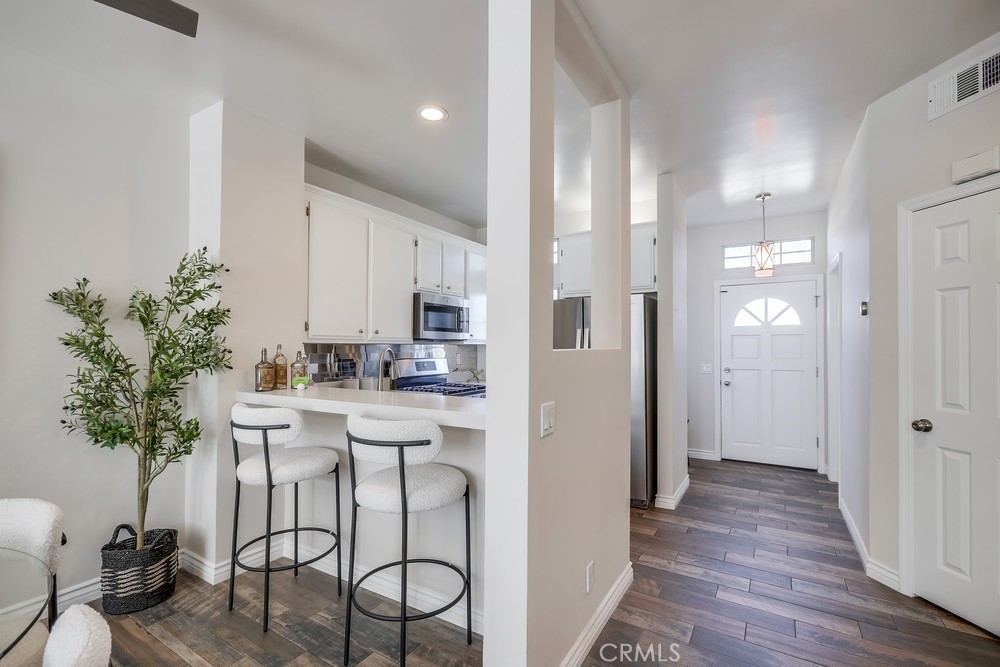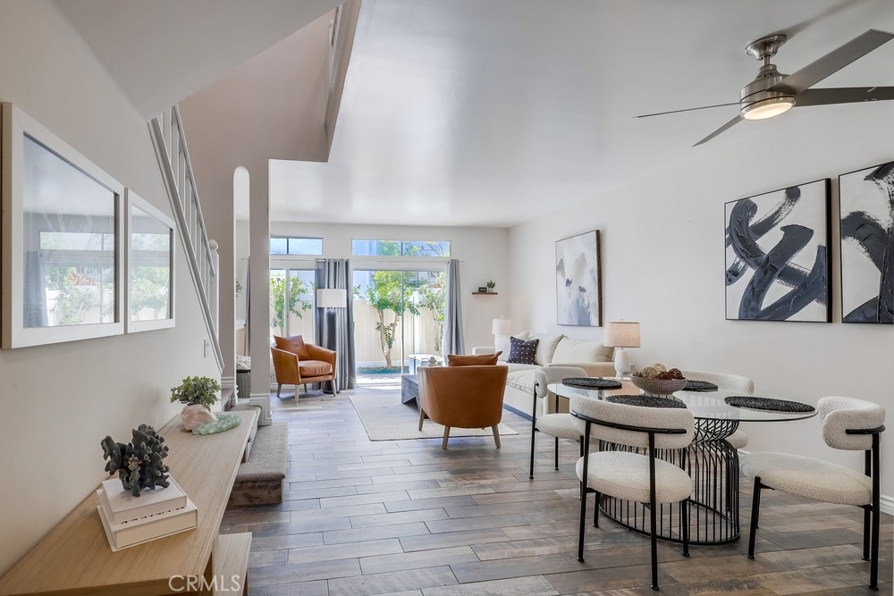 This spacious town-home in the highly sought-after Hampton Village offers 2 PRIMARY EN-SUITES with WALK -IN closets, along with 2.5 modern bathrooms, and attached garage. Enjoy the convenience of being minutes from beautiful beaches, major freeways, and nearby shopping centers for all your daily essentials. With approximately 1,200 square feet of thoughtfully designed space, this serene two-level town-home offers privacy with no neighbors above or below. This home and neighboring units with shared plumbing have been recently RE-PIPED, ensuring reliability. Throughout the residence you’ll find finishes such as plank-style ceramic flooring that mimics reclaimed wood, providing a timeless and durable aesthetic, as well as smooth finished walls. The kitchen is equipped with quartz countertops, stainless-steel appliances, including a brand new dishwasher, a convenient breakfast bar, and a separate dining area. The great room, offering direct access to a private, FULLY FENCED PATIO, features a cozy fireplace adorned with textured Venetian plaster and ample built-ins for storage. The updated bathrooms feature sleek cabinetry, stylish countertops, and custom subway tile accents. Additional features include ceiling fans, a main floor powder room, full-size washer and dryer within the home, and close access to community pool and spa. This gem of a community has been undergoing major renovations, updated community lighting and repaving will be completed soon.