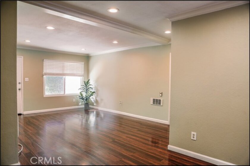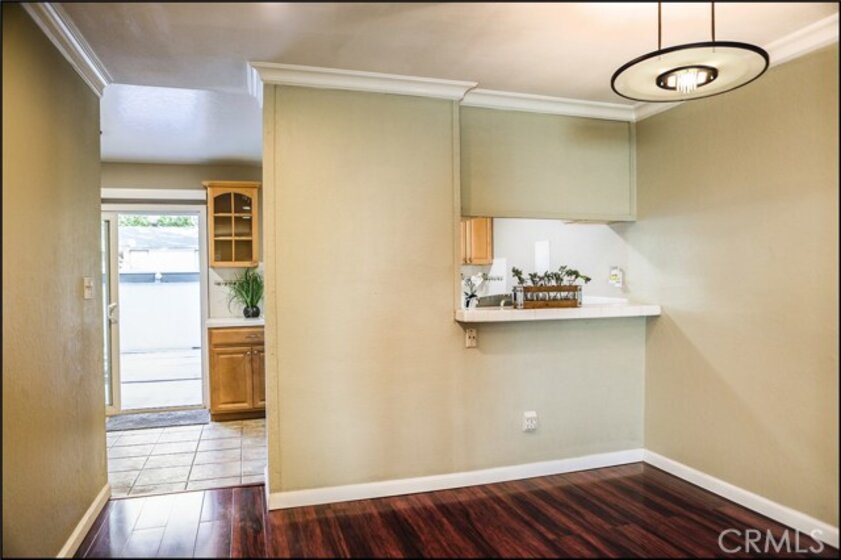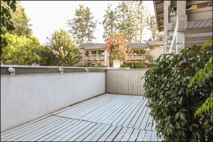 EXCEPTIONAL LOCATION AND HUGE PATIO WITH NO HOMES DIRECTLY BEHIND PROVIDING ADDED PRIVACY! Highly sought after ground level floor plan offering a large living room and dining room, kitchen with lots of cabinets, and breakfast nook with upgraded sliding door access to large rear patio. Rich laminate wood flooring, designer two tone interior paint and upgraded dual glazed windows, custom crown molding, recessed lighting, mirrored closet doors and upgraded window treatment. Master bedroom with walk-in closet and updated master bathroom. Second bedroom facing greenest with added privacy, and upgraded second bathroom. Large back yard is perfect for entertainment ad weekend bbq with friends. Covered carport space and community pool and spa. Excellent proximity to nearby shopping and easy access to nearby world class beaches!