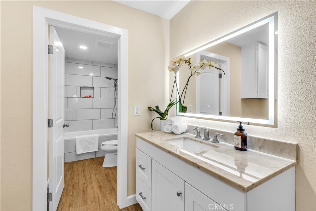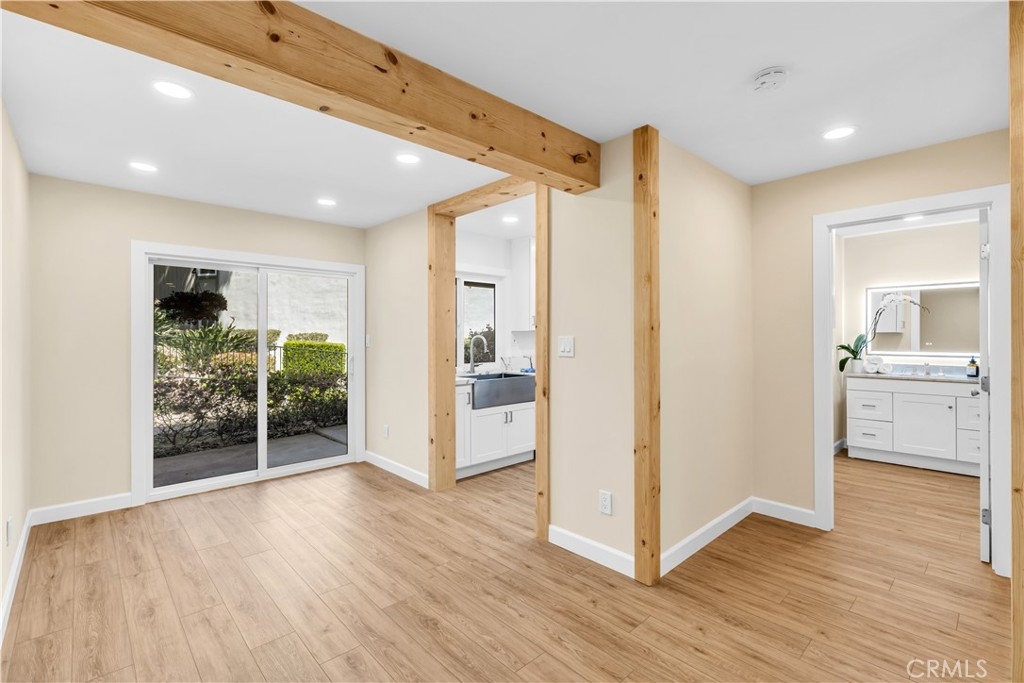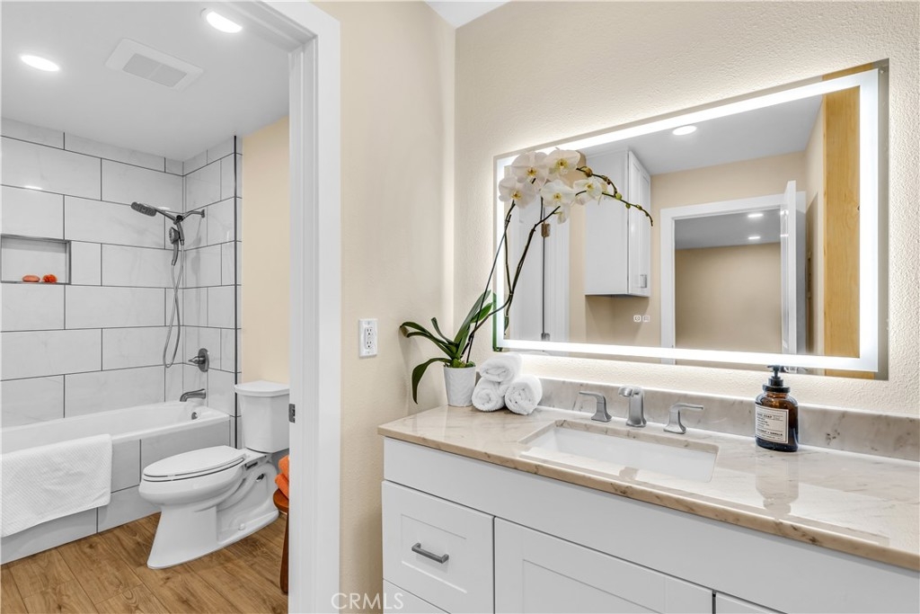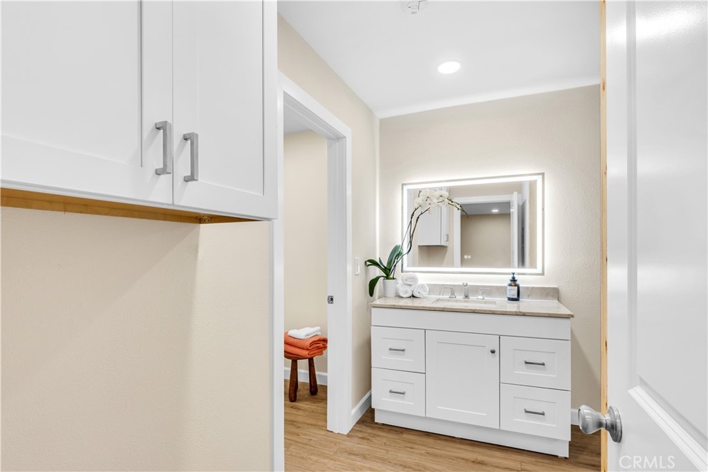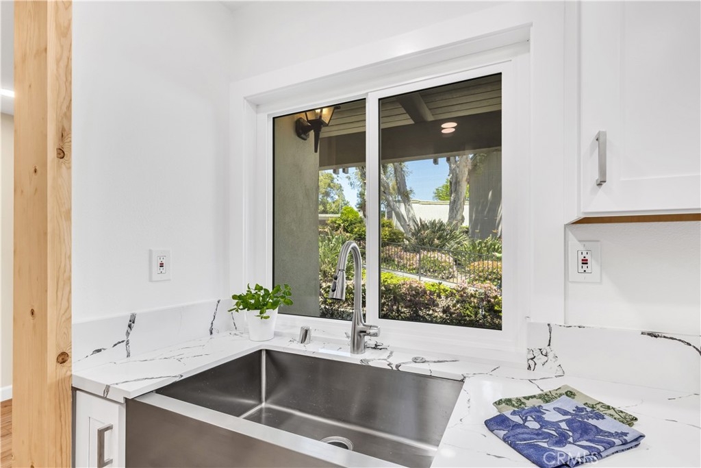 This beautifully updated ground-level one-bedroom and one-bath condo is minutes from the OC's most spectacular beaches. The updates include a renovated kitchen with new cabinets, countertops, and appliances. The bathroom has a new vanity and a ceiling fan in the bedroom, as well as new paint, recessed lights, and vinyl floors throughout the unit. Community amenities include a pool, laundry room, and a clubhouse. This condo is conveniently located within walking distance of shops, restaurants, and Laguna Niguel Library. Take advantage of this opportunity.