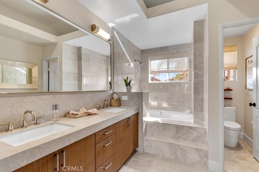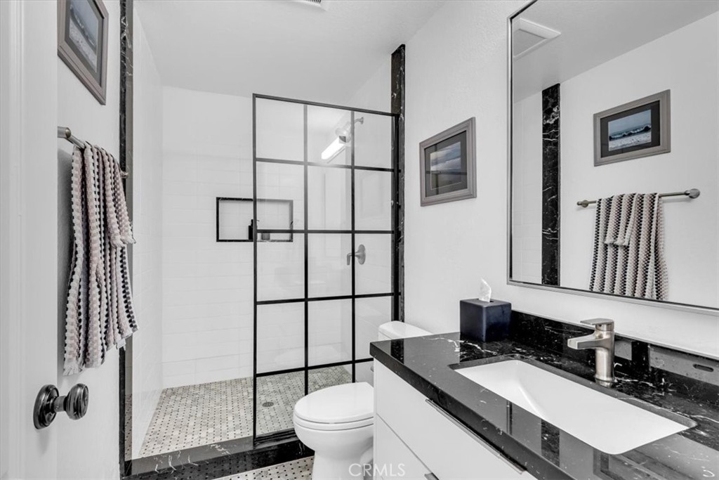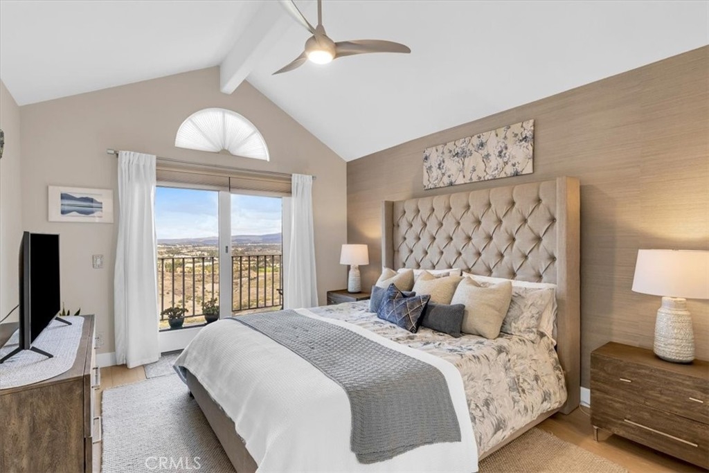Phenomenal panoramic views welcome you to this refined two bedroom, two and one-half bath home, thoughtfully remodeled with high-end finishes throughout. Elegant engineered flooring flows through the living spaces, complementing a designer kitchen appointed with crisp quartz countertops and updated cabinetry. The bathrooms feature marble counters and elevated fixtures that create a spa-like experience. Set on an impressive wrap-around lot, the exterior offers exceptional space for entertaining, unwinding in the private spa, or simply enjoying the phenomenal panoramic views. With scenic hiking trails located nearby, the home provides a perfect blend of luxury living and Southern California outdoor lifestyle.