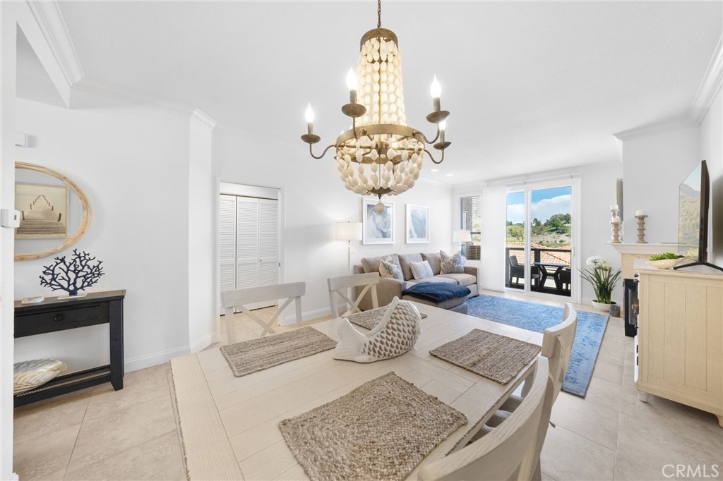 Location! Location! Ideally situated in the community of La Vista in Laguna Niguel, and just minutes away from the ocean, this stunning 1 bed, 1 bath, ground level unit with views and 1 car attached garage is Exceptional in every way. Highlights include newer windows and sliding door, crown molding, updated lighting fixtures throughout, travertine tile flooring, and designer paint. The kitchen has been accented with granite counters, newer cabinetry, updated lighting, and stainless steel appliances including refrigerator that overlooks the spacious, light and bright living room that is equipped with two sided fireplace encased with tile. Adjacent to the dining area is the large bedroom with custom paint, walk-in closet with mirrored wardrobe, and plenty of storage. Brand new remodeled bathroom with newer counter, updated cabinets, new toilet, custom lighting and mirror, and brand new shower with seamless glass door and tile walls. Laundry closet is also conveniently located inside and includes washer and dryer. One car attached garage with direct access completes this wonderful home! Community has also been re-piped. Home is truly turnkey and ready for move-in. Enjoy the many amenities La Vista community offers: clubhouse, pool, 2 spas, gym and BBQ’s. The ocean is approximately 2 miles away. Bike path leads to Salt Creek Beach. Close to world famous resorts such as the Montage, The Ritz Carlton, and Monarch Beach Resort. And within walking distance to El Niguel County Club and Laguna Niguel Racquet Club.