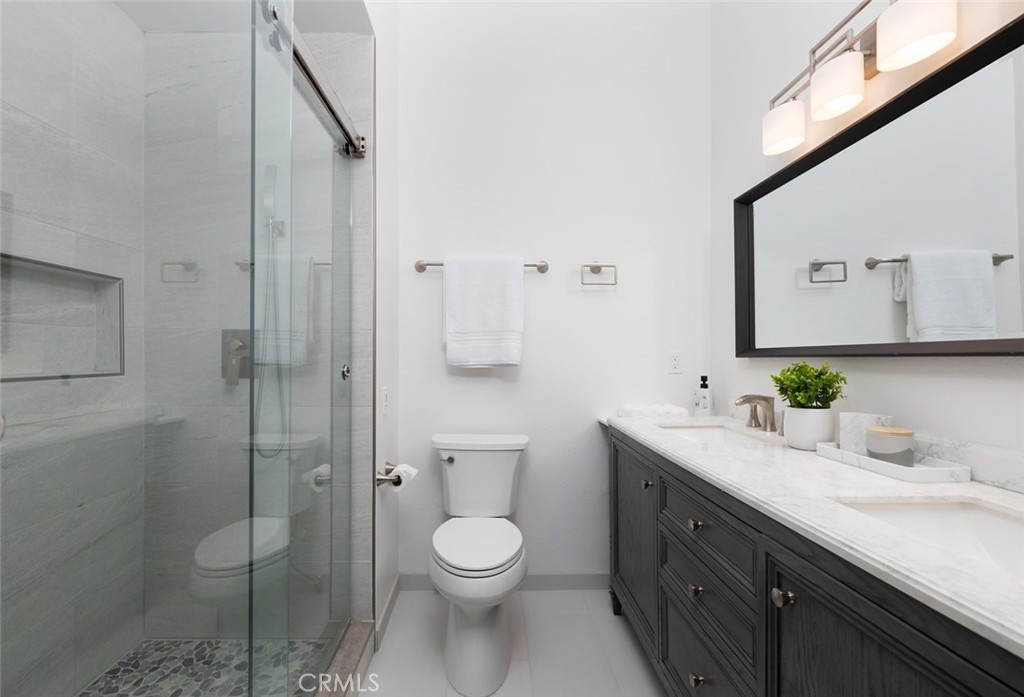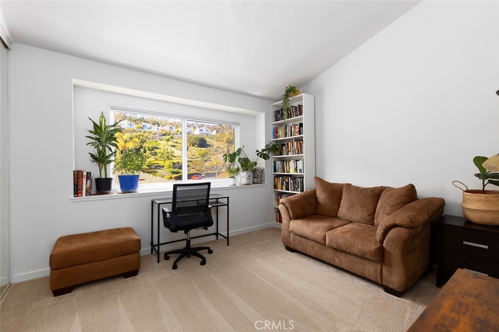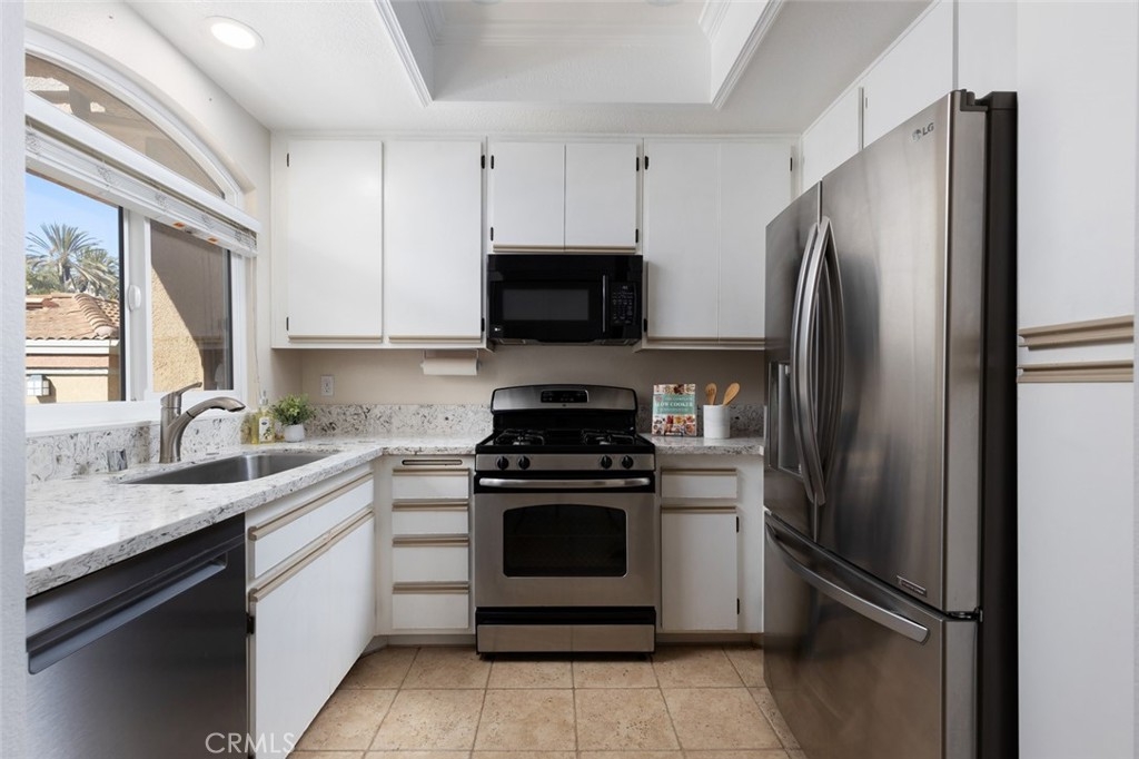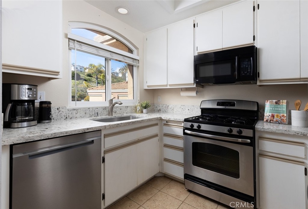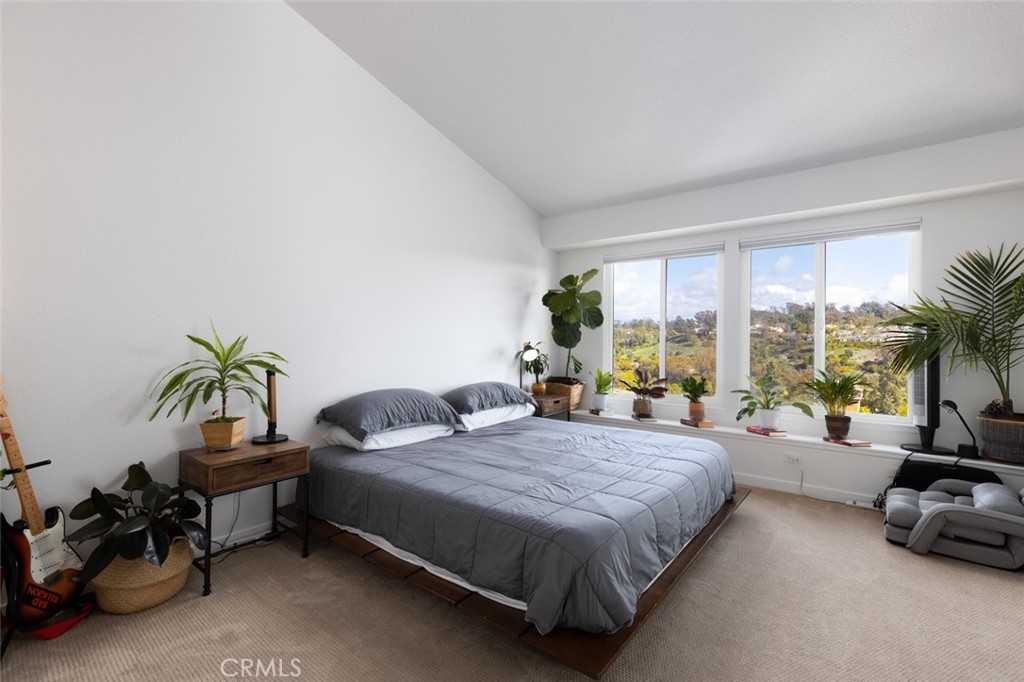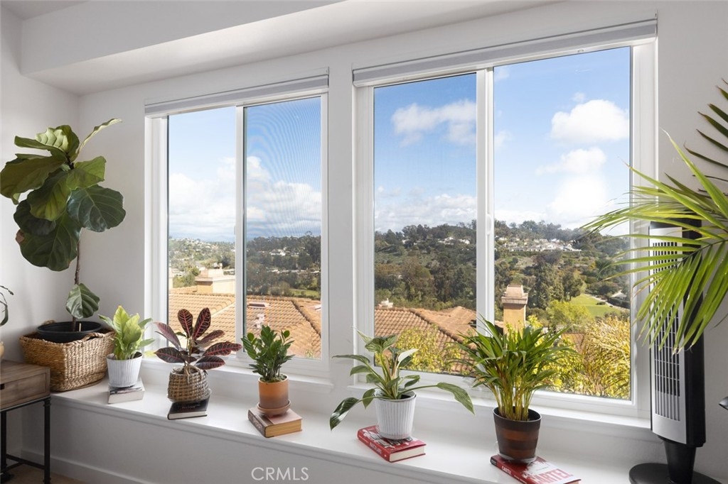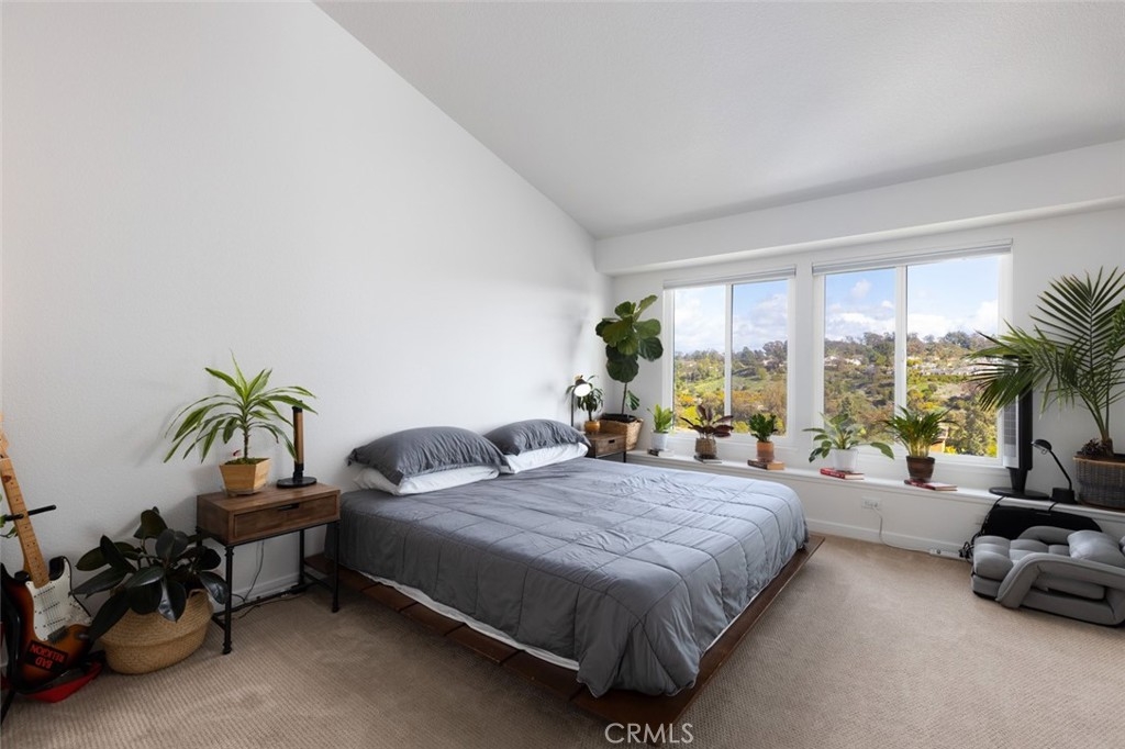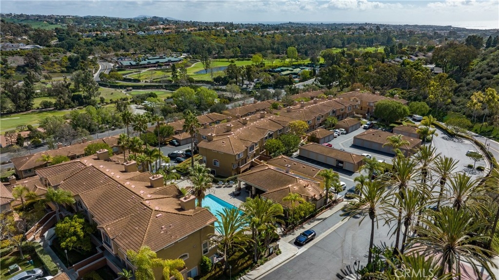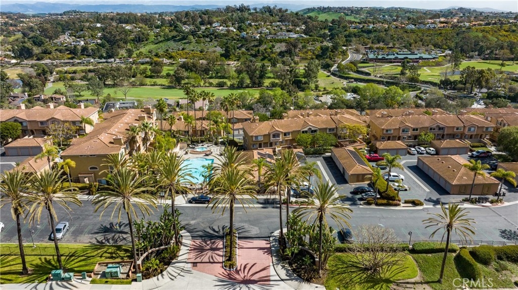 Wonderful dual master suite home in the highly sought after community of La Vista in Laguna Niguel. With a spacious floorplan, high ceilings, plenty of natural light and panoramic views of the golf course and mountains, this condominium has it all. As you walk in the front door the first thing you will notice is the large living room with sliding glass doors to the balcony and fabulous view. An updated kitchen with stainless appliances, large farmhouse sink, plenty of cabinet space and a half bathroom completes the first floor. On the second floor, you will find two bedrooms both with vaulted ceilings, huge closets, private en-suite bathrooms, and stunning panoramic views. One bathroom has been highly upgraded with a beautiful walk-in shower and dual sink vanity. With a second-floor laundry closet, a detached one car garage, and located just steps away from the beautiful community amenities, this condominium truly is a special home. With an excellent location across from El Niguel Country Club, Laguna Niguel Racquet Club and a short drive to the beach, La Vista community offers resort style amenities including a pool, spa, clubhouse, barbecues, and gym/exercise room.