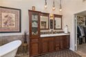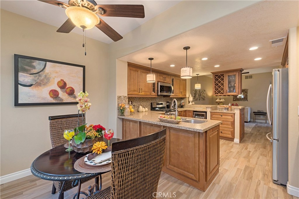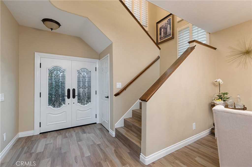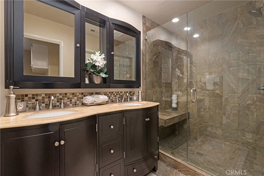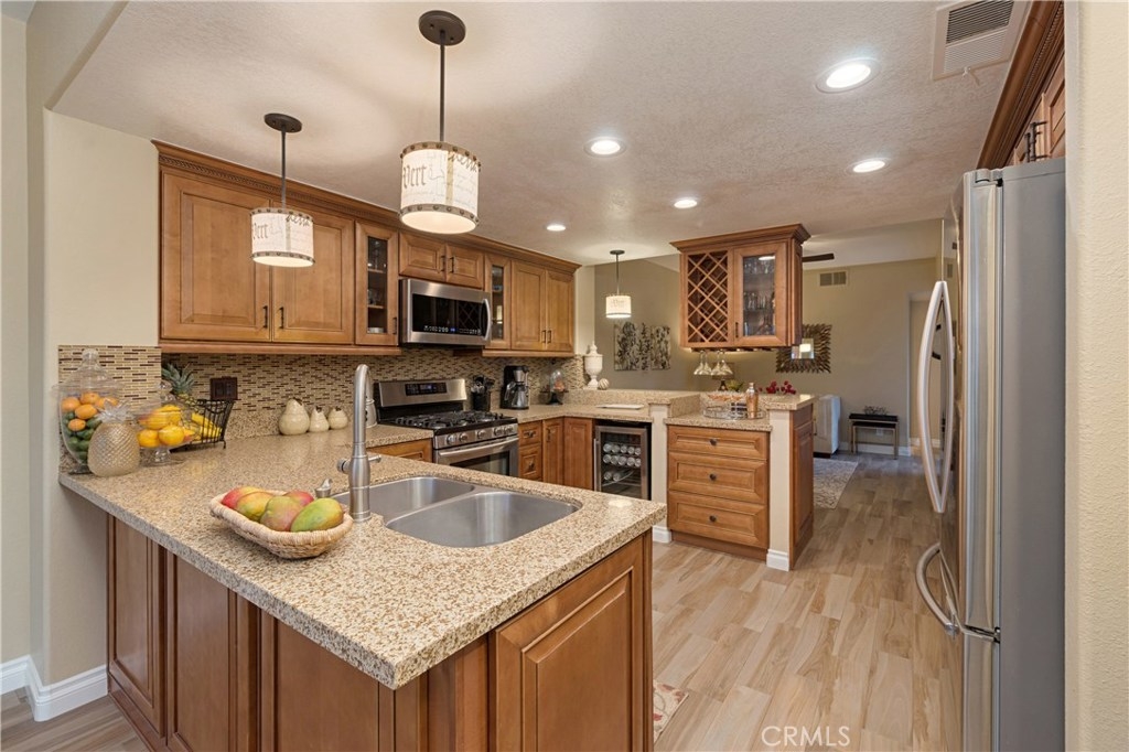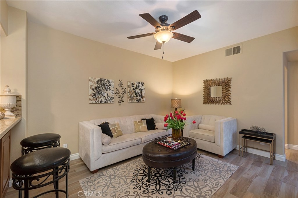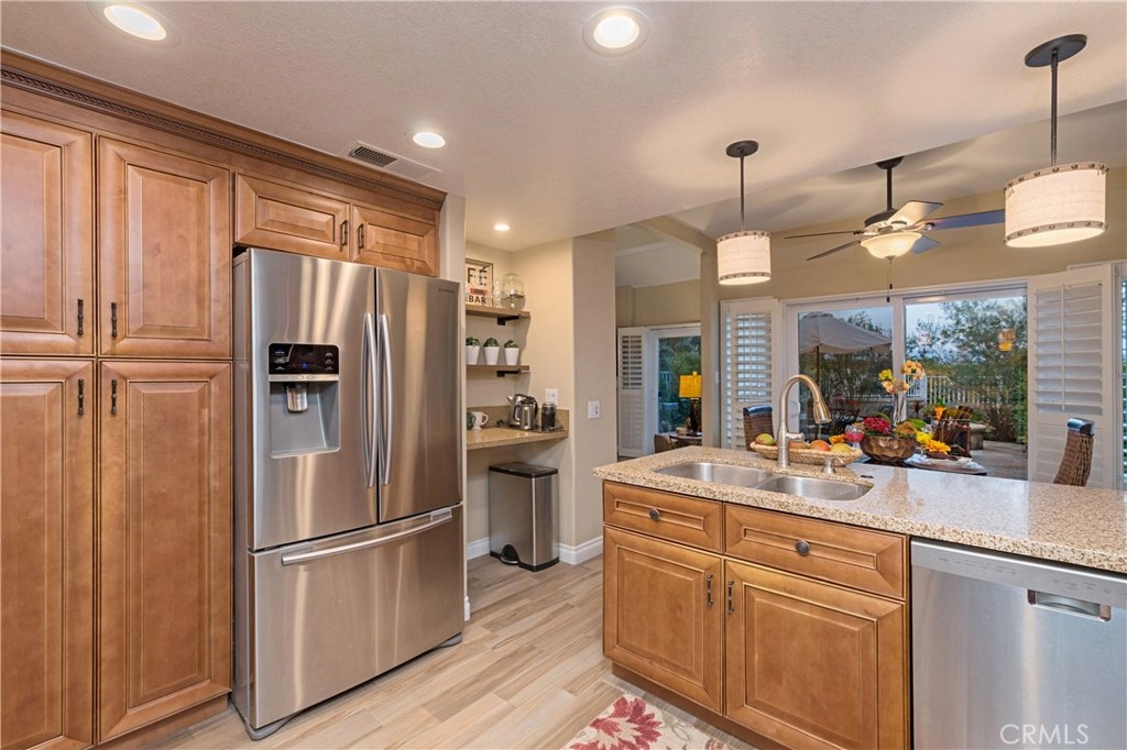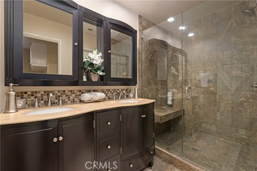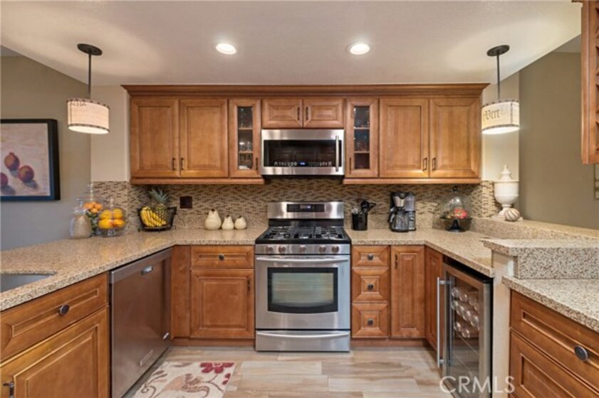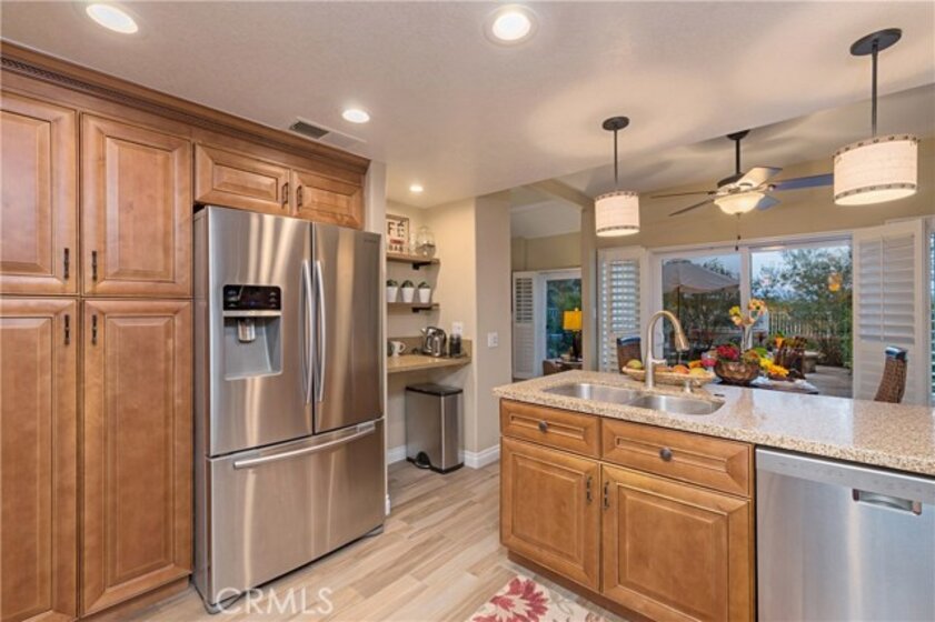 This elegant Laguna Sur property is uniquely located giving quiet privacy along with a spacious side yard and backyard to these 3 bedrooms 2 1/2 bath home. A travertine path leading to the iron gate into a quaint courtyard filled with the subtle sound of a bubbling Italian fountain. The leaded glass doors open to the bright open floor plan accented with expansive windows and volume ceilings. The spacious dining room is perfect for casual or formal entertaining for friends and family. Living room and breakfast nook open to the travertine patio and fire pit with a beautifully planted backyard accented with olive trees that surround the home. The remodeled kitchen includes stainless appliances quartz countertops and an L shaped counter with bars stools on one side. Plantation shutters and porcelain wood floors adorn the complete lower level and stairway. Finally, is the family room/den, a great place to relax and listen to the courtyard water feature. Master bedroom suite is a luxurious retreat with relaxing balcony and walk-in closet. Master bath has dual vanities, walk-in shower with new travertine tile, and freestanding tub. Completely reimagined and updated 2 years ago by the current owner the property exudes casual sophistication. THIS IS A VERY DOG FRIENDLY YARD FENCED AND PLENTY OF SPACE.
