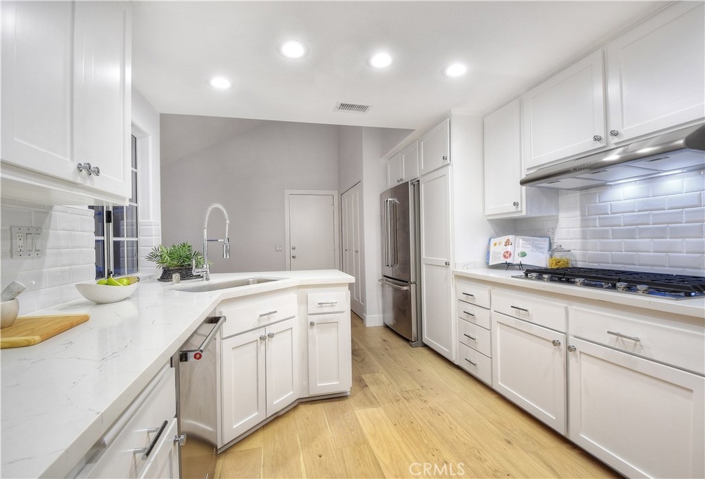 Recently refreshed, this Laguna Sur villa offers unencumbered views of Catalina and Treasure Islands paired with tranquil Pacific vistas. Beautifully done the 2-bedroom design includes two full baths plus two half-bathrooms. The interior is brightened by vaulted ceilings, skylights, a multitude of French windows and doors – all maximizing the natural light afforded by this home’s positioning. Thoughtfully designed for entertaining and coastal living, the floor plan boasts hardwood floors throughout, a chef’s kitchen with stainless steel appliances, stone counters and an abundance of cabinets. An extra-large bonus room is easily converted to a main floor bedroom or is the ideal home theatre or teen’s lounge. Offering privacy and a retreat from a busy day, the dual master suites are enhanced by sweeping ocean views that can be enjoyed from view decks off each suite. Chrome accents, upgraded tile flooring and shower surrounds highlight the masters ensuite bathrooms. Additional amenities found in this amazing home are: a 2-car garage with direct access, additional storage, and gated courtyard for alfresco soirees. The community amenities include a guard gated entrance, tennis courts, a pool and spa. The home’s prime location is within close proximity to the Gold Coast’s desirable beaches – 1000 Steps, Aliso Beach and West Street Beach, as well as the area’s notable eateries, boutique shopping, and cultural entertainments. *Owner will consider adding a 3rd bedroom if desired